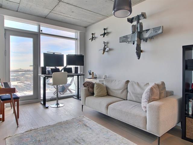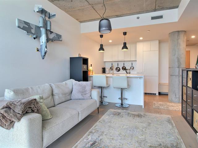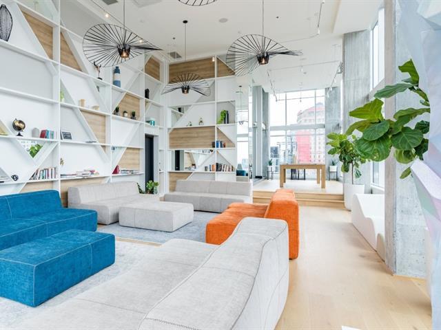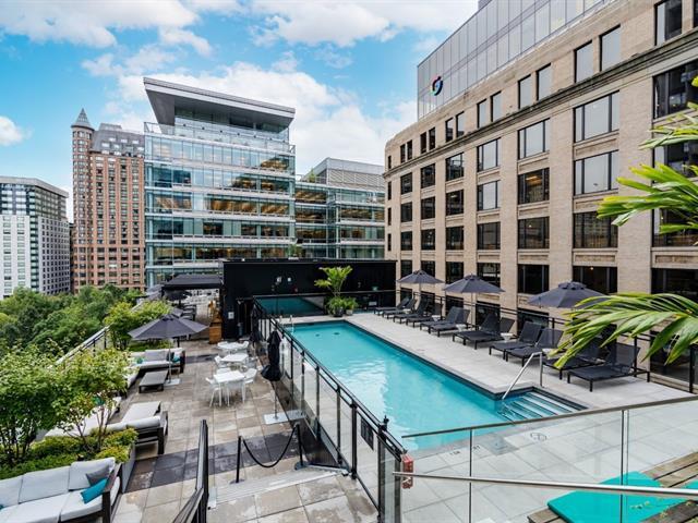 Experience city living at its best in this bright 1-bedroom condo on the 27th floor of Humaniti. Featuring an ensuite bathroom and open living space, the kitchen comes with fridge, stove, microwave, induction cooktop, dishwasher, washer, and dryer. Includes parking (2-070) and locker (2-040). Humaniti offers a pool, terrace, gym, lounge, and 24/7 security, creating a vibrant, connected community. Steps from shops, cafés, transit, and cultural attractions, it's the perfect spot to enjoy downtown Montreal. (45328291)