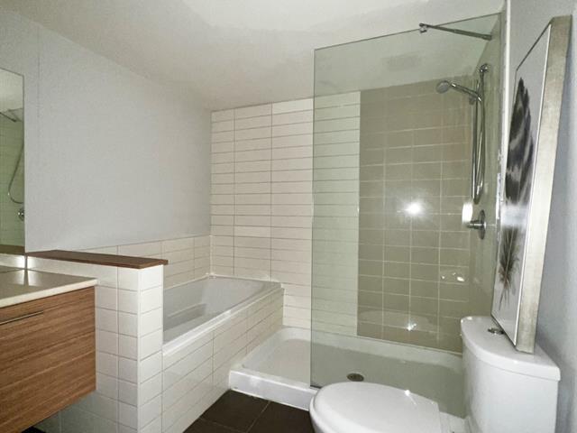 Superb 3½ condo for sale, located on the 4th floor of a modern concrete building constructed in 2010. This corner unit offers exceptional natural light thanks to its large windows and features a good-sized bedroom and a spacious bathroom with separate bath and shower. You will also enjoy a private terrace, indoor parking, and exclusive storage space. Just a 2-minute walk from the future REM station, the location is ideal, surrounded by numerous services and amenities. A perfect opportunity for both owner-occupiers and investors. (53762410)