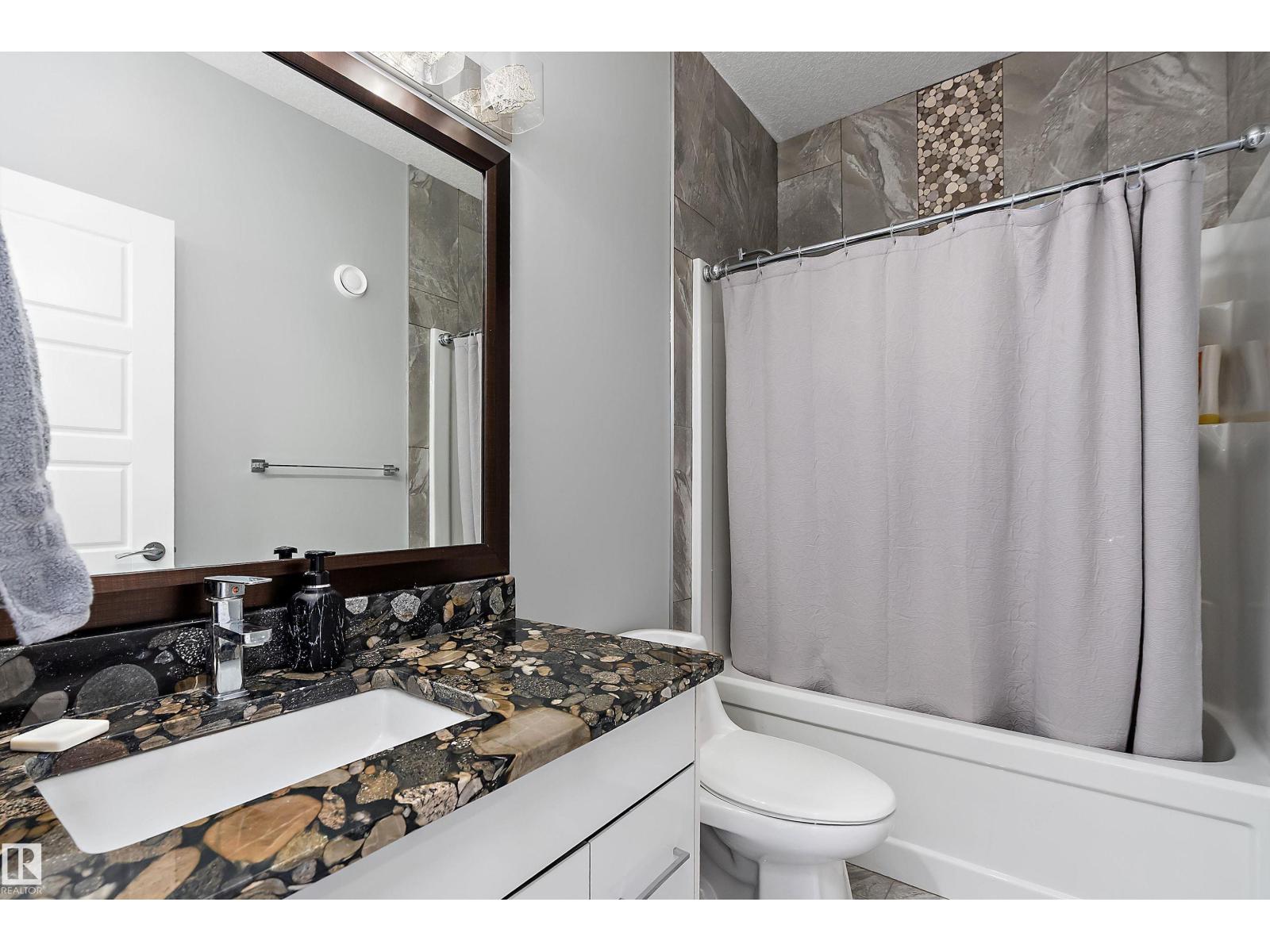 Located in the highly desired community of Oxford. This stunning, 2711 sqft modern home offers great curb appeal and grand entry. High ceilings and stylish light fixtures create a bright, welcoming atmosphere throughout. The kitchen features white cabinetry, sleek island, dining space, pantry and a separate spice kitchen, perfect for everyday cooking and entertaining. A separate entrance adds extra flexibility. The main floor includes a bedroom and full bathroom, ideal for guests or extended family, along with a laundry room complete with sink and storage. Upstairs offers a bonus room with a large balcony and 3 bedrooms, two with private ensuites. The primary bedroom includes double sinks, a soaker tub, and a walk-in closet. An additional 4-piece bathroom completes the upper level. Enjoy air conditioning, a double oversized heated garage that fits 3 vehicles, plus a large backyard and deck. Located close to the Anthony Henday, schools, shopping, parks, public transportation and all other major amenities. (33839274)
