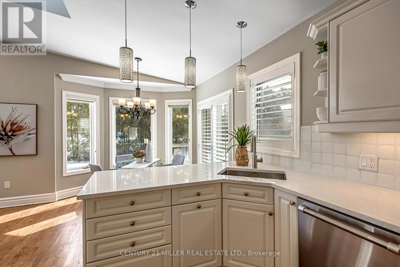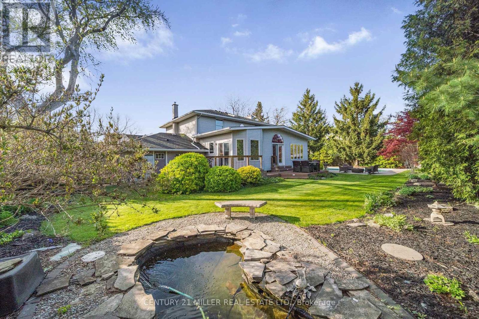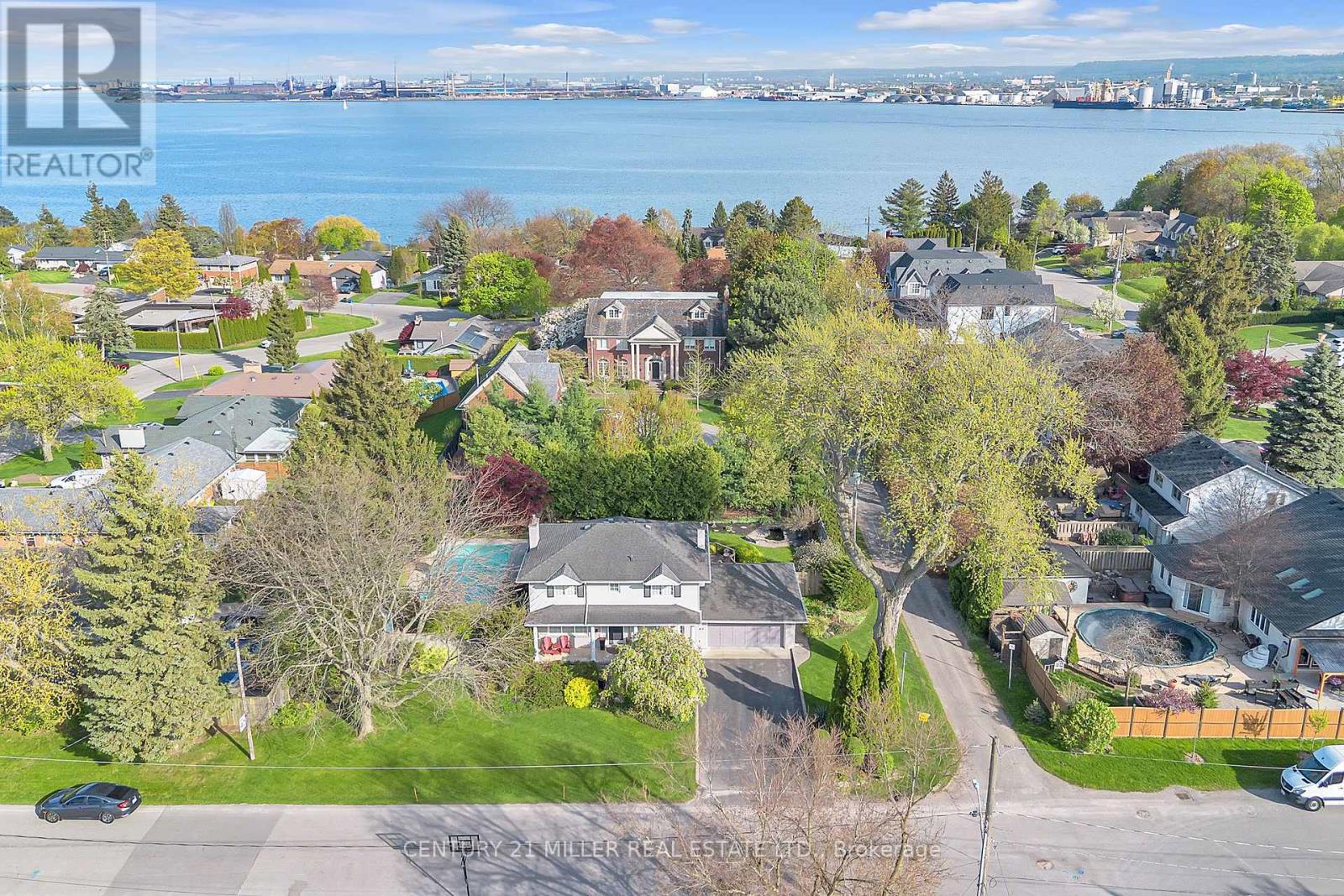 Welcome to this meticulously maintained two-storey home in the highly coveted and peaceful Aldershot South community. Offering over 3,200 sq ft of beautifully finished living space, this stunning 3+1 bedroom, 2.5 bathroom home perfectly blends elegance, comfort, and everyday functionality. Set on a beautifully landscaped lot designed for exceptional privacy, this home offers true tranquility in the city. Start your mornings on the charming covered front porch, where friendly neighbours and a strong sense of community make this neighbourhood so special. The bright, chef's kitchen is designed to impress with quartz countertops, breakfast bar, high-end appliances, and a separate beverage fridge. The spectacular family room offers cathedral ceilings, two skylights, and a dramatic wall of windows. Upstairs, retreat to the spacious primary suite alongside two generously sized bedrooms. The spa-inspired 5-piece bathroom features a glass-enclosed shower, double quartz vanity, and a luxurious BainUltra freestanding soaker tub with massaging jets and chromatherapy lighting. The finished basement provides incredible versatility with a large rec room plus an oversized bedroom and an adjacent 3-piece bathroom, perfect for guests, teens, or multi-generational living. Other features include: hardwood floors, classic wainscoting, and elegant crown moulding throughout. The separate dining room showcases a striking coffered ceiling, ideal for hosting memorable gatherings. Step outside to your private backyard oasis featuring a tranquil pond, lush gardens, and a two-tier composite deck. The impressive 36' x 18' in-ground gunite saltwater pool with non-slip Rubaroc surround is ready for unforgettable summer entertaining. An in-ground sprinkler system keeps the grounds pristine with ease. Additional highlights include a double garage and private driveway with parking for 6 vehicles. Enjoy this unbeatable location just steps to the RBG, lakefront trails, LaSalle Park & Spencer Smith Park (42157581)