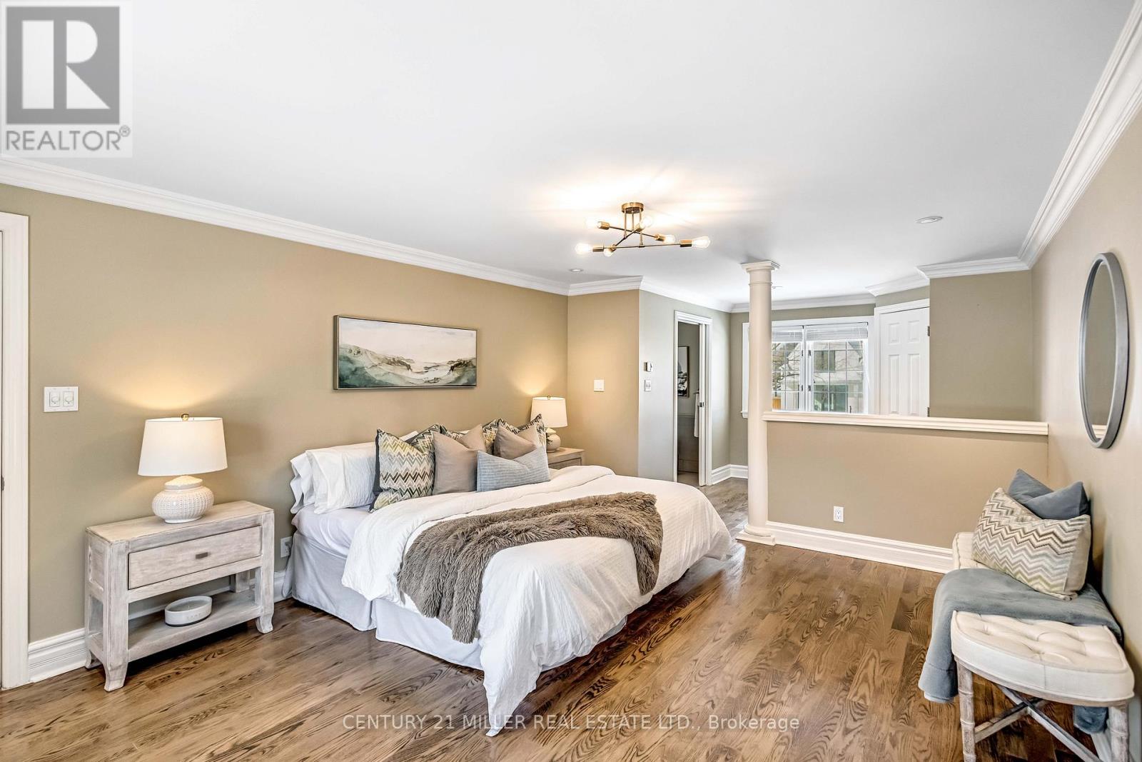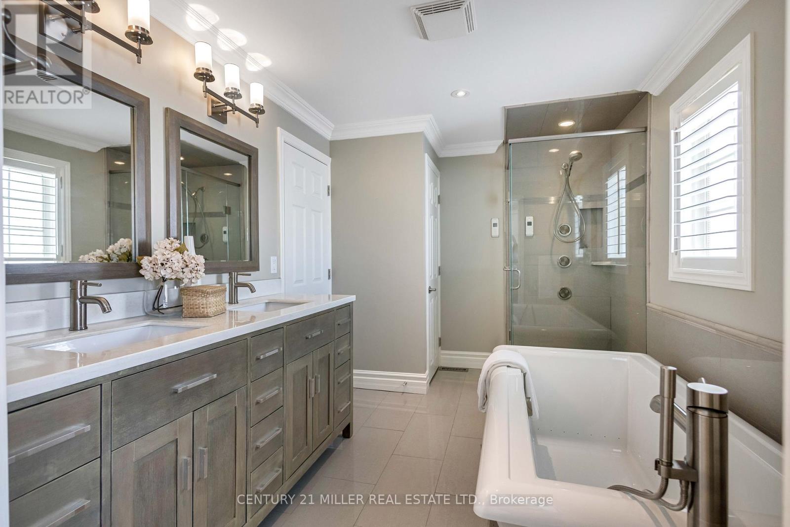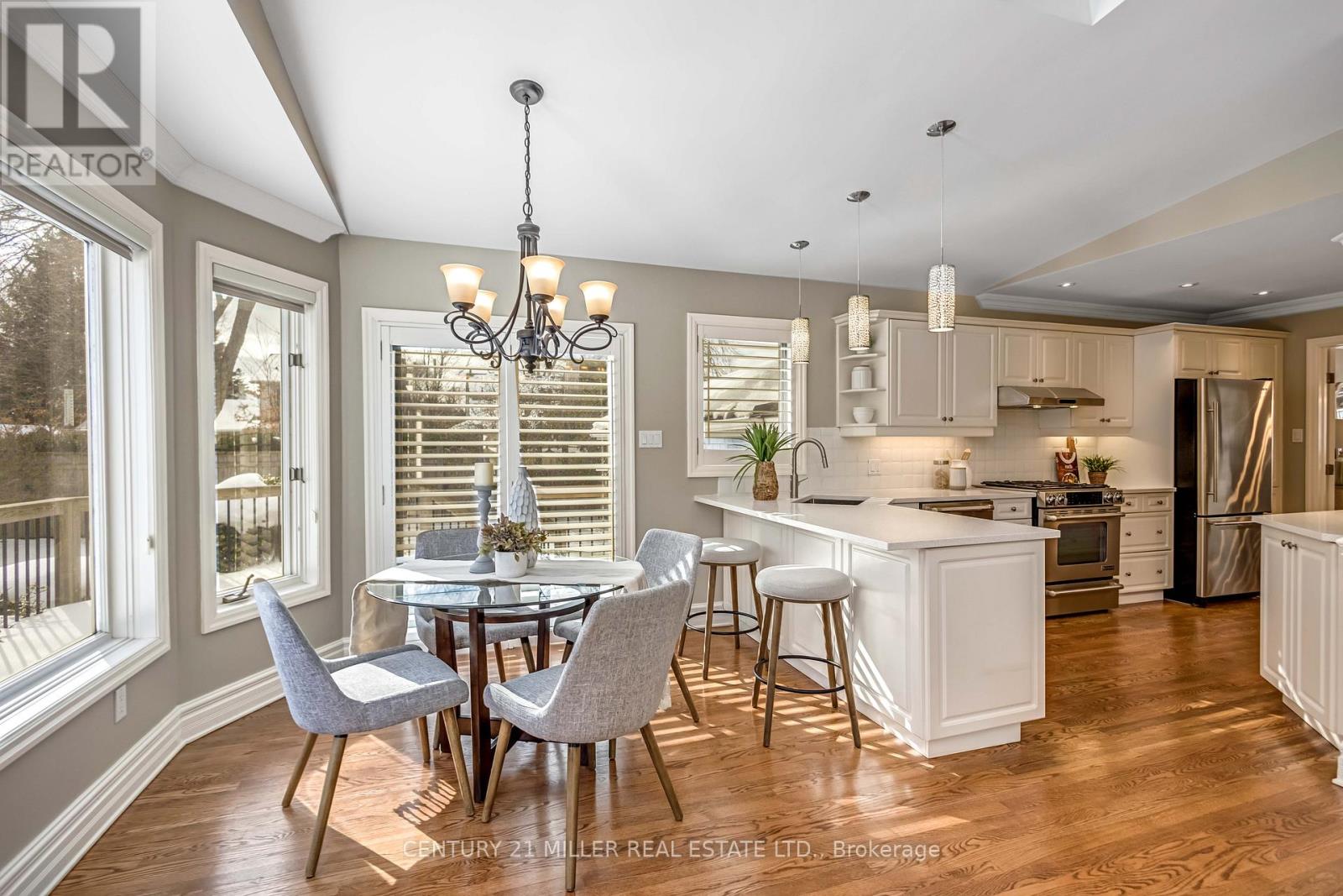 Welcome to this meticulously maintained two-storey home in the highly coveted and peaceful Aldershot South community. Offering over 3,200 sq ft of beautifully finished living space, this stunning 3+1 bedroom, 2.5 bathroom home perfectly blends elegance, comfort, and everyday functionality. Set on a beautifully landscaped lot designed for exceptional privacy, this home offers true tranquility in the city. Start your mornings on the charming covered front porch, where friendly neighbours and a strong sense of community make this neighbourhood so special. The bright, chef's kitchen is designed to impress with quartz countertops, breakfast bar, high-end appliances, and a separate beverage fridge. The spectacular family room offers cathedral ceilings, two skylights, and a dramatic wall of windows. Upstairs, retreat to the spacious primary suite alongside two generously sized bedrooms. The spa-inspired 5-piece bathroom features a glass-enclosed shower, double quartz vanity, and a luxurious BainUltra freestanding soaker tub with massaging jets and chromatherapy lighting. The finished basement provides incredible versatility with a large rec room plus an oversized bedroom and an adjacent 3-piece bathroom, perfect for guests, teens, or multi-generational living. Other features include: hardwood floors, classic wainscoting, and elegant crown moulding throughout. The separate dining room showcases a striking coffered ceiling, ideal for hosting memorable gatherings. Step outside to your private backyard oasis featuring a tranquil pond, lush gardens, and a two-tier composite deck. The impressive 36' x 18' in-ground gunite saltwater pool with non-slip Rubaroc surround is ready for unforgettable summer entertaining. An in-ground sprinkler system keeps the grounds pristine with ease. Additional highlights include a double garage and private driveway with parking for 6 vehicles. Enjoy this unbeatable location just steps to the RBG, lakefront trails, LaSalle Park & Spencer Smith Park (42157581)