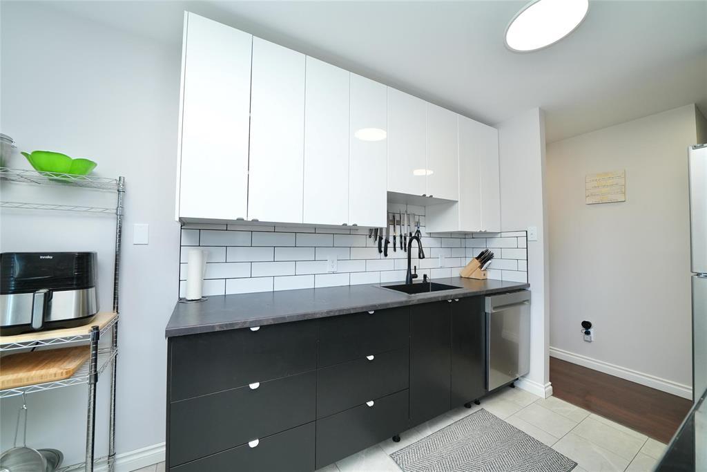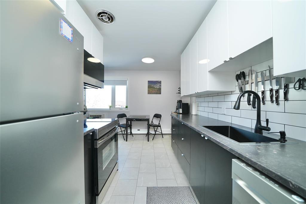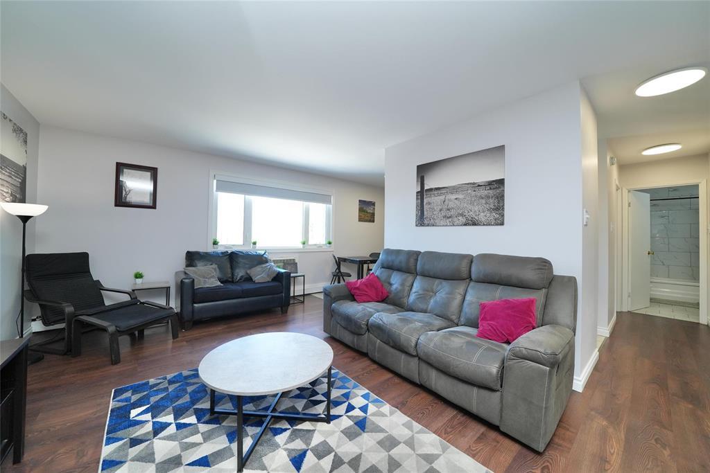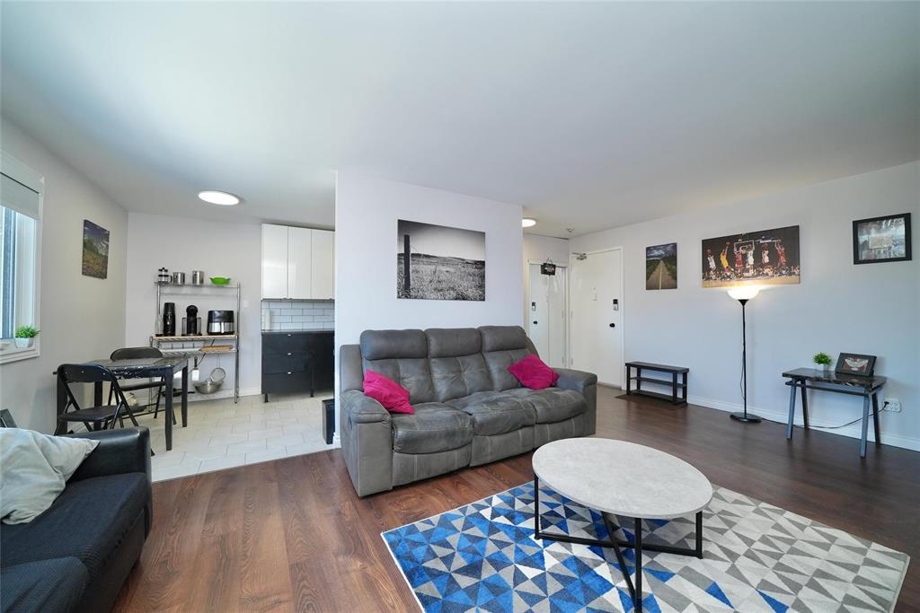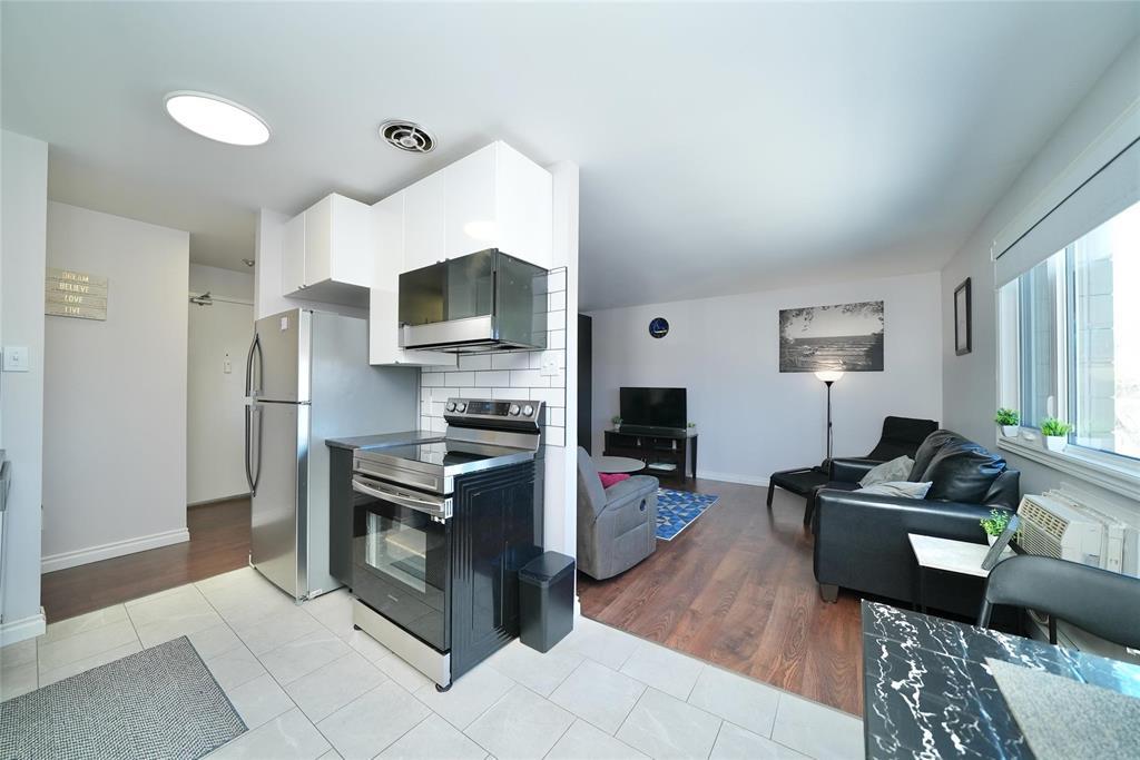 4H//Winnipeg/Beautifully updated top floor corner unit. Updated windows, paint, flooring, kitchen cabinets, Stainless Steel appliances, backsplash, ceramic tile leading through kitchen, hallway and into bathroom. New tile Tub-surround, dual flush toilet, vanity and lighting, Large bedroom with double closet, In-suite storage room with deep freeze. Unit was professionally renovated November 2024. Quiet building with concrete floor and wall construction. Water, heat, electricity and parking all included in condo fees! Offered fully furnished as a turn-key move in ready home. Call your realtor and book your viewing today! Priced to sell quickly! (231968620)