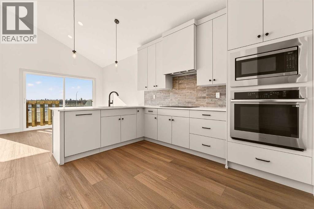 Welcome to the Glenbarr bi-level by Stranville Living Master Builder, located in the exciting new community of Blackwolf, just a short two-minute walk from Legacy Park — and when I say close, I mean you can grab your skates or pickleball paddle and be there in no time. Legacy Park truly is one of the best outdoor spaces in Lethbridge, featuring an outdoor skating rink, pickleball and basketball courts, a skate park, spray park, and beautiful walking paths that wrap around the scenic pond. Living here means your weekends practically plan themselves.Step inside and you’re immediately greeted by the soaring vaulted ceilings that make this home feel bright, open, and far larger than you’d expect. The kitchen is a standout and showcases Stranville’s signature finish quality, complete with a paneled Fisher & Paykel fridge, paneled dishwasher, sleek induction cooktop, built-in oven and microwave, quartz countertops, slow-close cabinetry, and convenient bar seating. It’s modern, clean, and thoughtfully designed for both everyday living and entertaining.Just off the kitchen is the dining area, positioned perfectly beside sliding glass doors that lead out to your future deck — an ideal extension of your living space during the warmer months. The adjacent living room features an oversized window that floods the main floor with natural light, creating a warm and inviting atmosphere.This level also includes two generously sized bedrooms along with a well-appointed four-piece bathroom, offering flexibility for family, guests, or a home office setup.Upstairs, you’ll find the laundry conveniently located near the private primary retreat. The primary bedroom continues the vaulted ceiling design and features another oversized window, enhancing the sense of space and light. The ensuite is finished with dual vanities, a walk-in shower, and an impressive 11-foot-long walk-in closet that provides plenty of storage without compromise.With alley access at the rear and Stranville’ s elevated finish standards throughout, this brand-new home delivers the perfect balance of thoughtful design, modern style, and an unbeatable location in one of Lethbridge’s most recreation-focused communities. This home is virtually staged. (31652771)