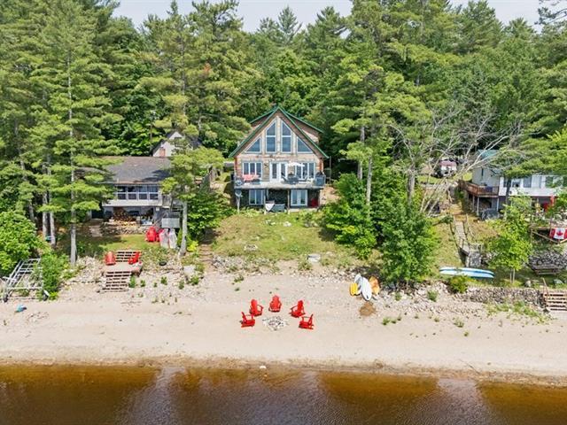Welcome to your four-season waterfront retreat! This beautifully maintained 3-bedroom, 3-bath cottage features a sandy beach, calm swimmable water, stunning sunset views, and a hot tub just steps from the shore. The open-concept design showcases vaulted wood ceilings, large windows with panoramic lake views, a modern kitchen perfect for entertaining, and a finished basement for added living space or guest accommodations. Turn-key and fully equipped, this property offers strong Airbnb and short-term rental potential year-round the perfect blend of personal escape and smart investment. 1.5 hour from Ottawa! (51651610)