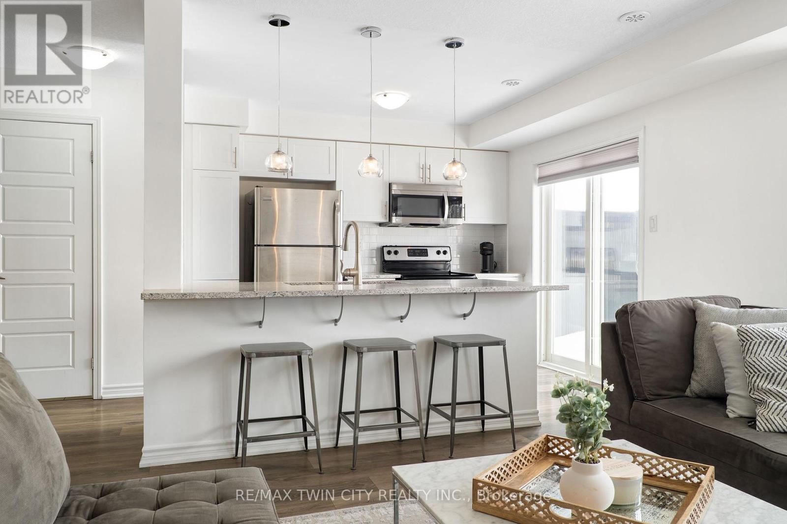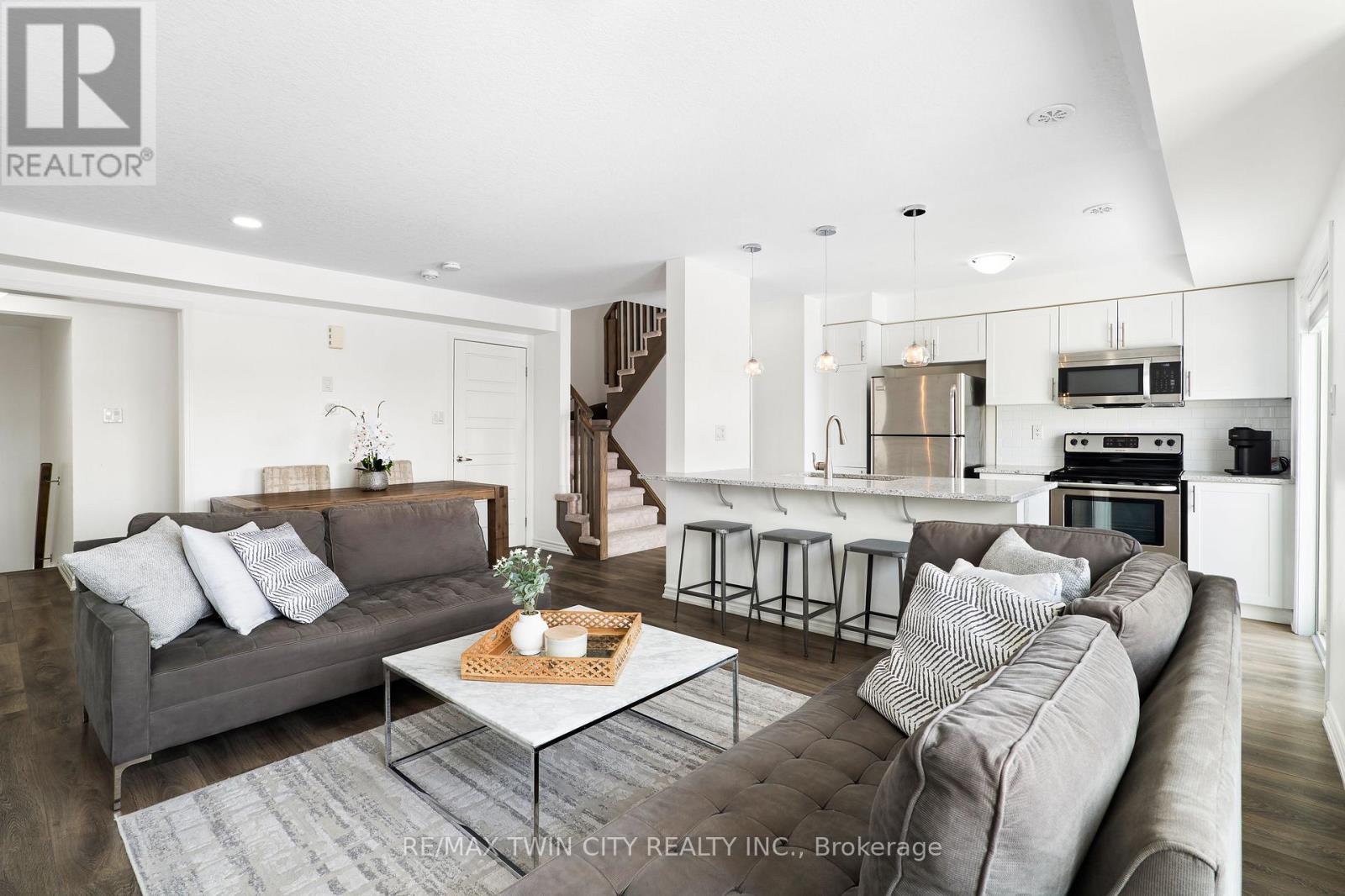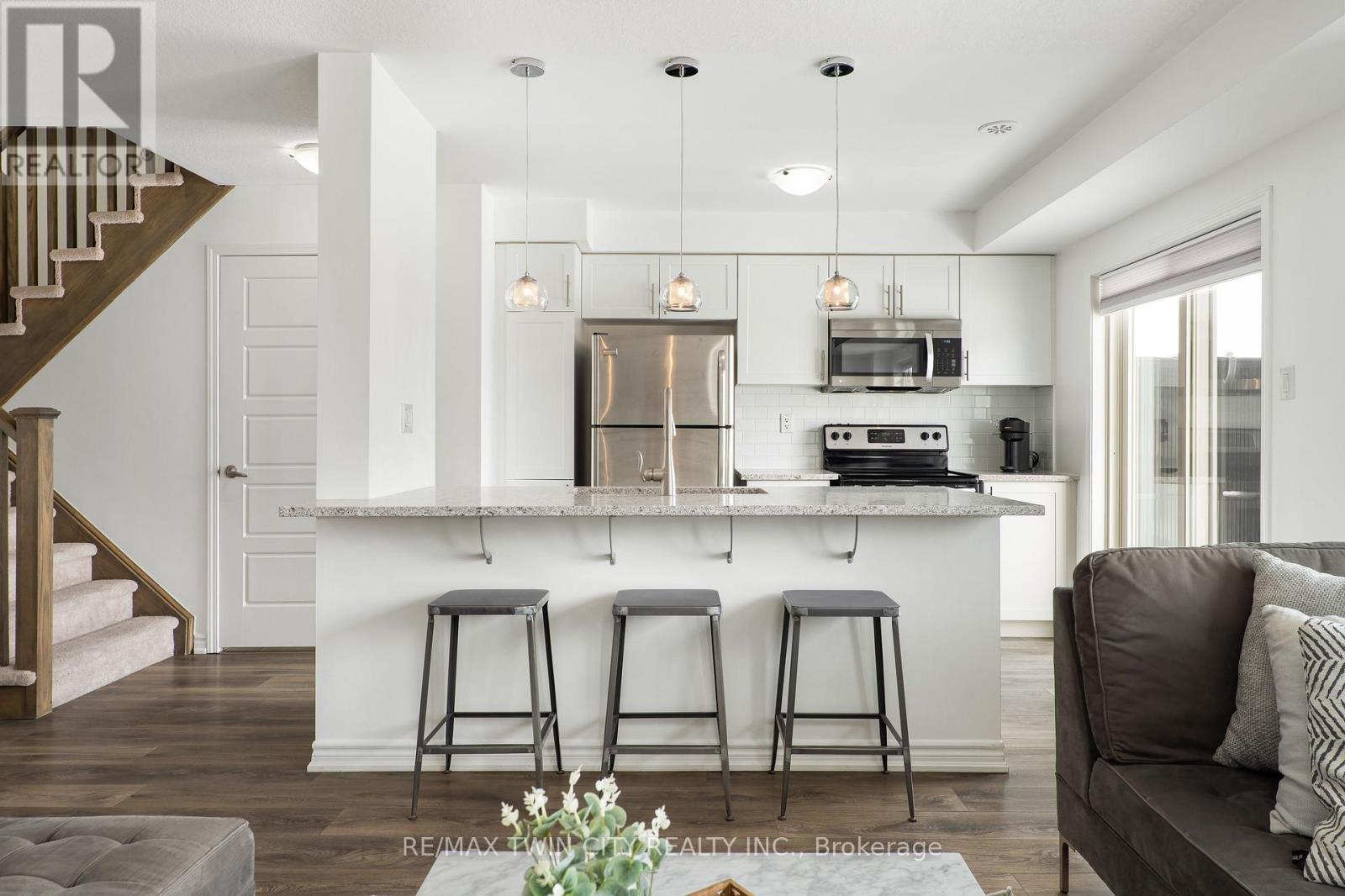 WELCOME TO 593 GOLDENROD LANE! This move-in-ready 2-bedroom, 1.5-bathroom townhome offers a bright, open layout and thoughtful upgrades throughout, all in a prime Kitchener location that puts shopping, nature and parks, schools, and the 401 right at your doorstep. Checkout our TOP 6 reasons this home could be the right fit for you: #6: PRIME KITCHENER LOCATION: This home sits in Wildflowers - one of Kitchener's most in-demand family neighbourhoods. You're minutes to the brand new RBJ Schlegel Park, Longos, Starbucks, Shoppers, and Scotiabank. Plus, you're only a short drive to Highway 401. #5: LOW-MAINTENANCE LIVING: Enjoy low-maintenance living with exterior upkeep included and low condo fees that keep monthly costs in check. Two parking spaces are also included - a single-car garage plus a driveway space. #4: BRIGHT MAIN FLOOR: The open-concept main floor is filled with natural light. Bright and carpet-free throughout, it creates a clean, modern feel, while large windows and custom window shades add comfort and privacy. You'll also enjoy the convenience of a laundry and powder room. #3: KITCHEN & DINING: The kitchen is at the heart of the home, featuring a subway-tile backsplash, quartz countertops, stainless steel appliances, an oversized stainless steel sink, and a breakfast bar. It connects seamlessly to the dinette and terrace, making it perfect for daily meals and relaxed entertaining. #2: OUTDOOR SPACE: Step outside to a terrace that extends your living space during the warmer months. It's the perfect spot for a morning coffee or winding down in the evening. #1: BEDROOMS & BATHROOM: Upstairs you'll find two spacious bedrooms, including a primary with walk in closet and a Juliette balcony, plus a privilege 4-piece main bathroom with a shower/tub combo. (42158891)