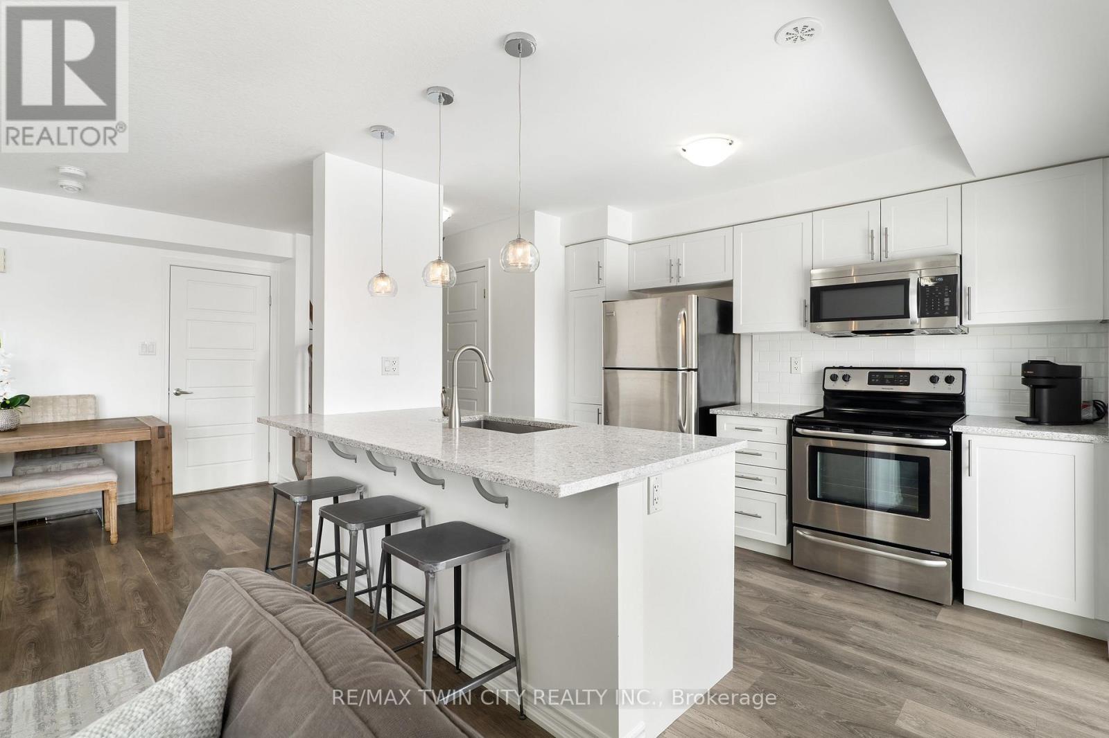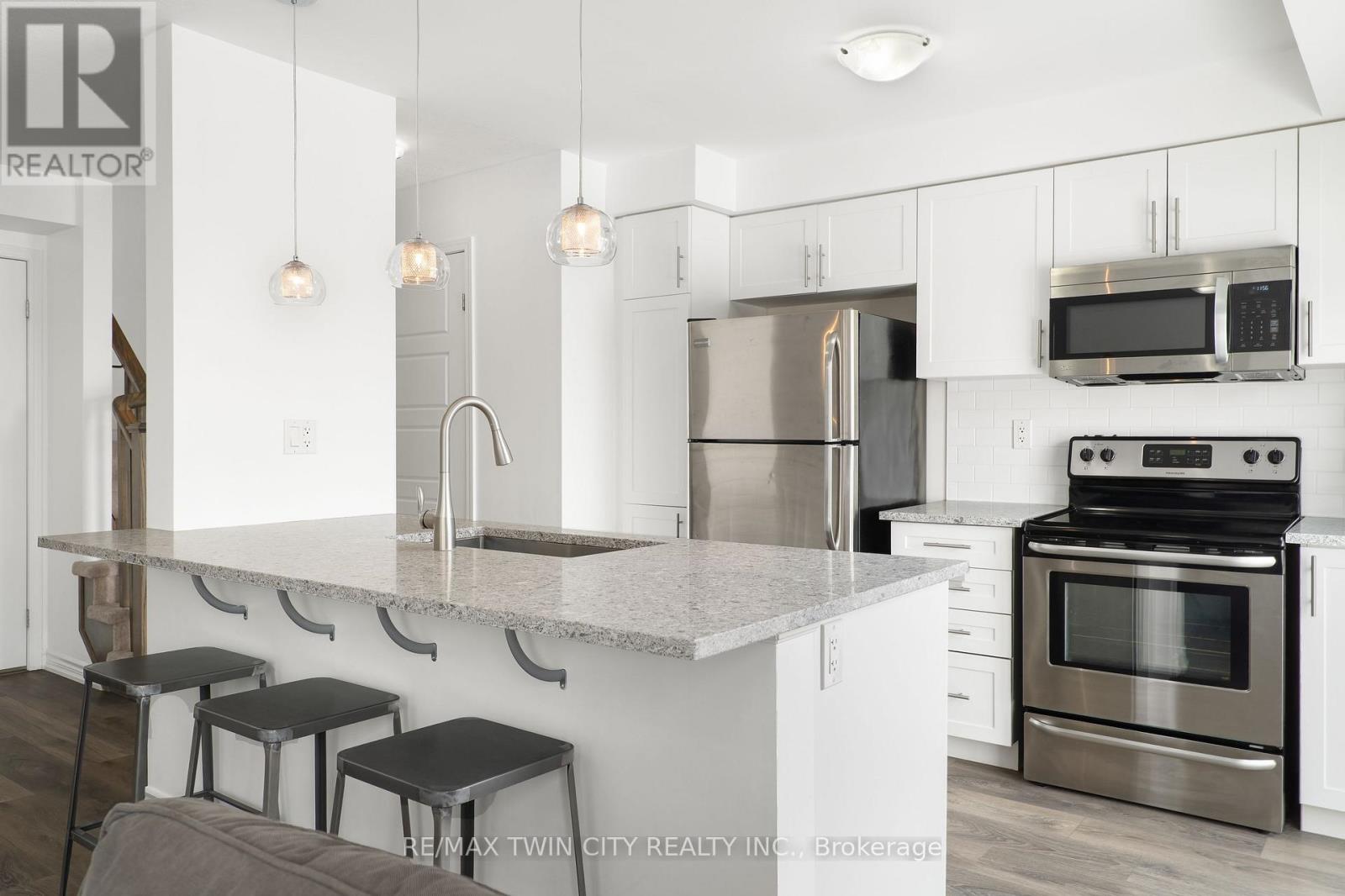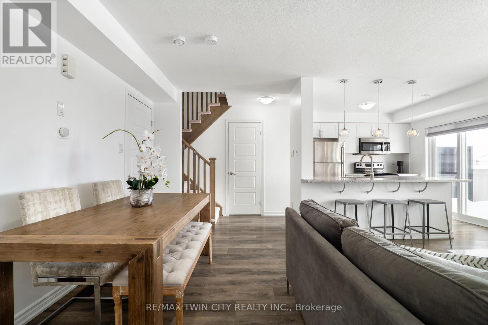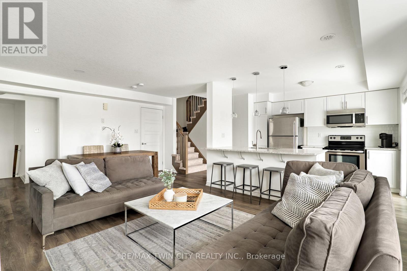 WELCOME TO 593 GOLDENROD LANE! This move-in-ready 2-bedroom, 1.5-bathroom townhome offers a bright, open layout and thoughtful upgrades throughout, all in a prime Kitchener location that puts shopping, nature and parks, schools, and the 401 right at your doorstep. Checkout our TOP 6 reasons this home could be the right fit for you: #6: PRIME KITCHENER LOCATION: This home sits in Wildflowers - one of Kitchener's most in-demand family neighbourhoods. You're minutes to the brand new RBJ Schlegel Park, Longos, Starbucks, Shoppers, and Scotiabank. Plus, you're only a short drive to Highway 401. #5: LOW-MAINTENANCE LIVING: Enjoy low-maintenance living with exterior upkeep included and low condo fees that keep monthly costs in check. Two parking spaces are also included - a single-car garage plus a driveway space. #4: BRIGHT MAIN FLOOR: The open-concept main floor is filled with natural light. Bright and carpet-free throughout, it creates a clean, modern feel, while large windows and custom window shades add comfort and privacy. You'll also enjoy the convenience of a laundry and powder room. #3: KITCHEN & DINING: The kitchen is at the heart of the home, featuring a subway-tile backsplash, quartz countertops, stainless steel appliances, an oversized stainless steel sink, and a breakfast bar. It connects seamlessly to the dinette and terrace, making it perfect for daily meals and relaxed entertaining. #2: OUTDOOR SPACE: Step outside to a terrace that extends your living space during the warmer months. It's the perfect spot for a morning coffee or winding down in the evening. #1: BEDROOMS & BATHROOM: Upstairs you'll find two spacious bedrooms, including a primary with walk in closet and a Juliette balcony, plus a privilege 4-piece main bathroom with a shower/tub combo. (42158891)