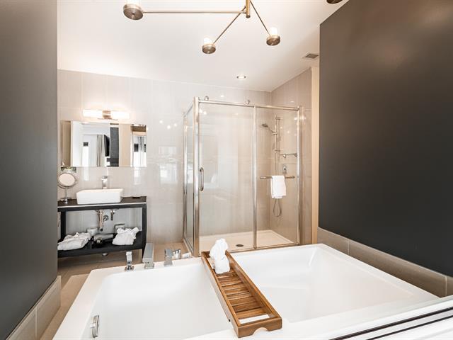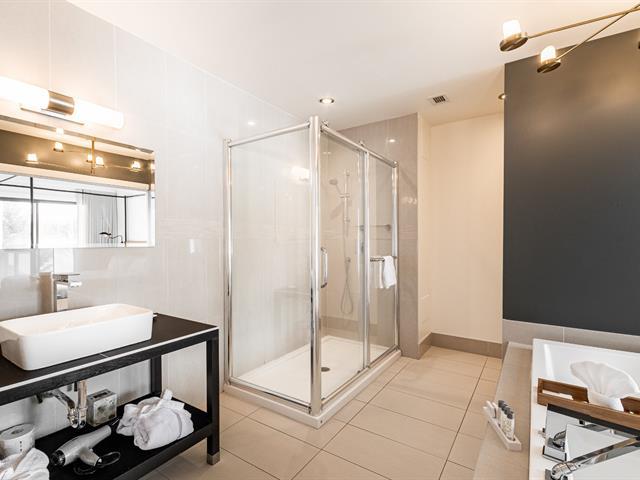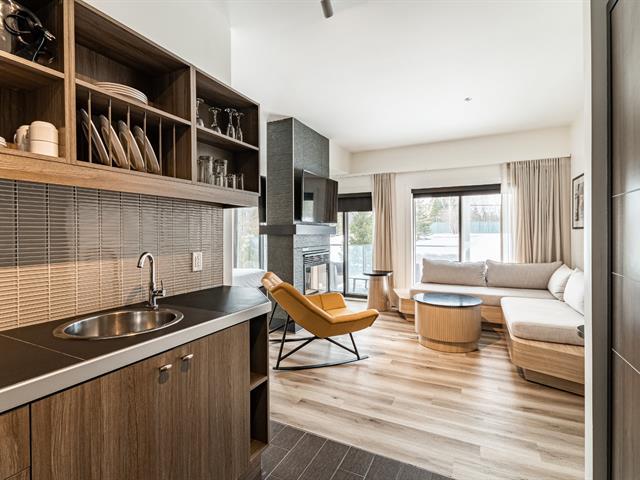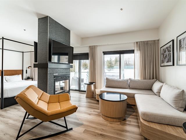 Luxurious condo of 465 sq. ft. with bedroom (King size bed) open to a living room & 2 sided gas fireplace. Also, a kitchenette well equipped. Contemporary bathroom with independent shower. Flat screen TV. Private spa. A large balcony offering you a relaxing environment based on nature & gardens. GST/QST must be added to the asking price (47191812)