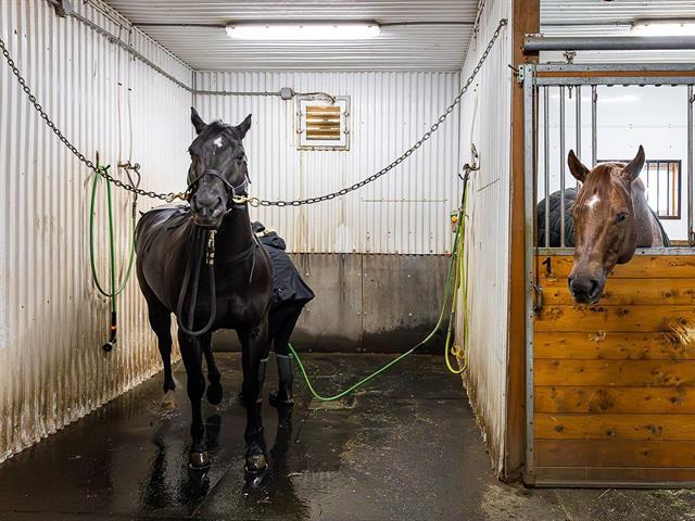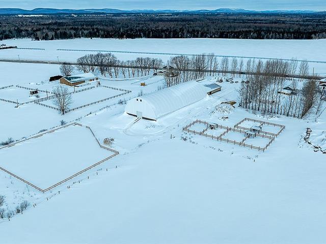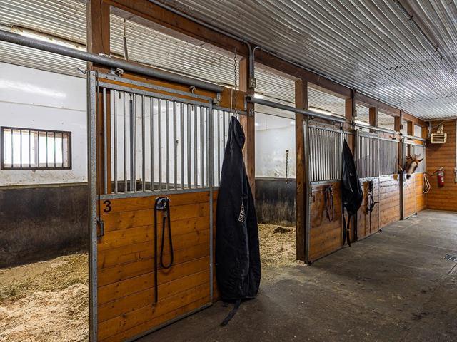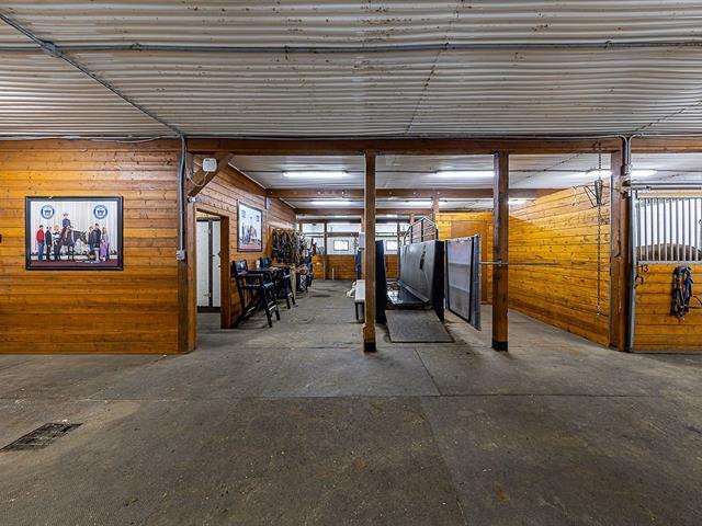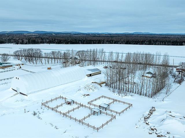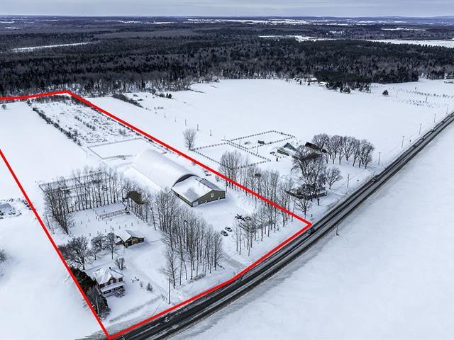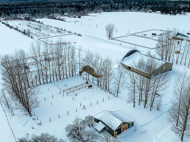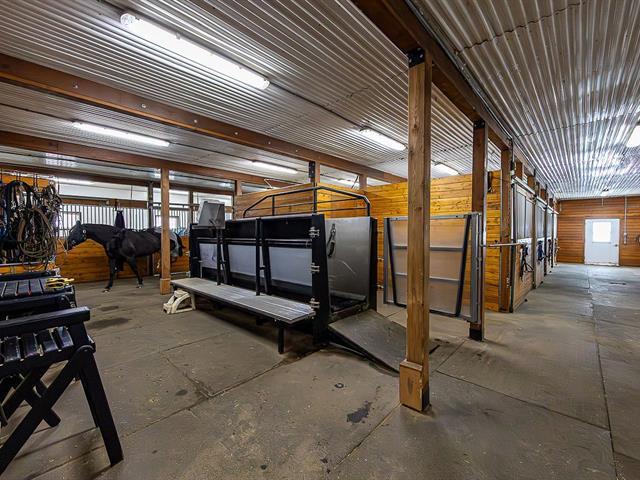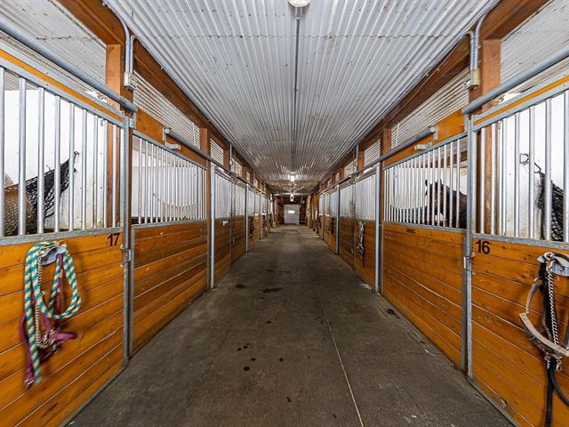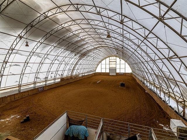 L'équestre à son meilleur, situé sur un magnifique terrain de 699 000 pi², avec une superbe écurie de 21 boxs entièrement équipée, disposant du seul tapis roulant aquatique à Québec. Son manège intérieur de 80 x 200 pieds de type dôme de marque Calhoun, vous invite à l'entraînement en toute saison. Plusieurs paddocks aménagés, de même qu'une petite écurie adjacente offrant 3 boxes supplémentaires. Sans oublier la maison tout de brique rénovée au fil des années, comprenant trois chambres et une aire ouverte, salon, la salle à manger et la cuisine. L'espace spa couvert vous mène au confort et à la détente. Venez vivre votre rêve équestre. GST/QST must be added to the asking price (58085577)