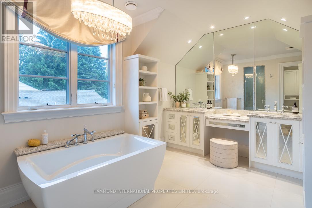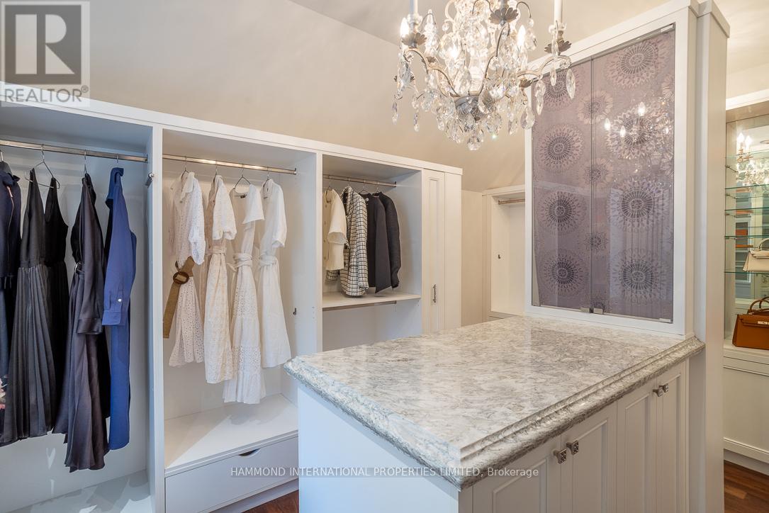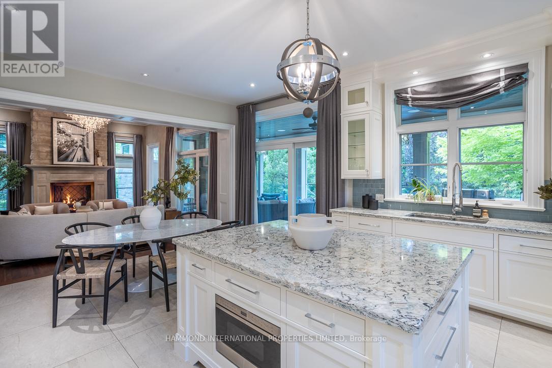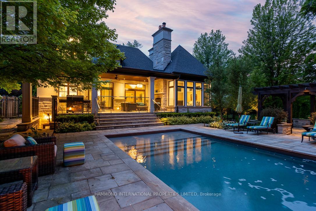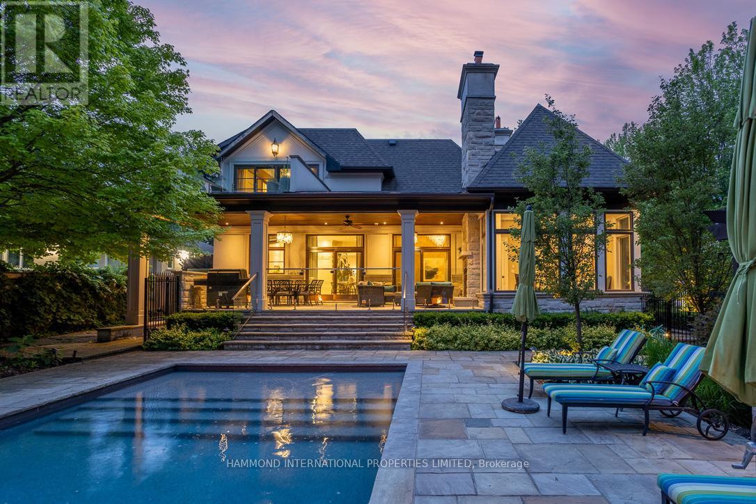 A breathtaking estate that seamlessly blends timeless sophistication with luxurious modern living. Beautifully appointed and exquisitely maintained, this residence is surrounded by mature trees and prized lots in one of Torontos most exclusive enclaves.Designed by renowned architect David Small and featuring interior decor by Jane Lockhart, this architectural masterpiece has been showcased in multiple home decor magazines and boasts award-winning exterior landscaping. The private, gated grounds create a tranquil oasis complete with a stunning pool deck, an outdoor loggia with a wood-burning fireplace and built-in speakers-perfect for entertaining under the moon and stars. Enjoy the added luxury of a private dog park and wash station - an ideal retreat for pet lovers.Inside, every detail has been thoughtfully curated to reflect the highest caliber of design and finish. The gourmet chefs kitchen is a culinary dream, outfitted with top-of-the-line appliances and a walk-in pantry. Walnut hardwood floors flow throughout, complemented by heated tiles in the kitchen and all ensuites. The home offers multiple formal and informal living areas, including a grand family room, elegant dining room, cozy library, sun-filled solarium, and refined entertaining spaces. Upstairs, the owners suite is located in its own private wing, complete with his-and-hers walk-in closets and a luxurious spa-inspired ensuite. Each additional bedroom features its own ensuite, offering comfort and privacy for family and guests alike.The expansive lower level includes a games and entertainment room, exercise space, and a nanny suite making this home truly exceptional for both everyday living and hosting.Just a short stroll away, you'll find prestigious private and public golf courses and some of the country's finest schools. Whether dining alfresco on the private covered terrace, relaxing in the landscaped gardens, or enjoying a quiet moment in the library -coming home has never felt so good. (42159446)