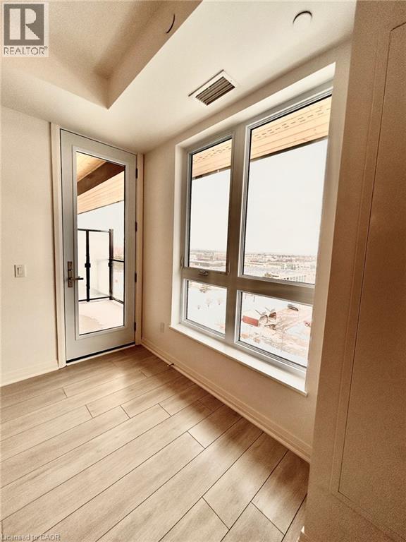 Welcome to THE JAKE! TOP FLOOR unit nestled above the city skyline. Eastern facing balcony overlooking Waterloo's Innovation corridor enjoys beautiful sunrises and all day light as it pours into this open concept modern living space. Neutral and contemporary finishes throughout. Flowing kitchen enjoys quartz counters, oversized stainless sink, over the range microwave, stainless stove and dishwasher. Layout offers great space for your kitchen table and cozy living room set up. Carpet free unit presents 1 bedroom and a full 4pc bathroom. One designated parking space located in the UNDERGROUND parking garage and is steps away from the elevator. Close to Nature and City this North Waterloo location offers many amenities for you to explore and is walking distance from your building. Great selection of dining experiences, regional mall, public transit, LRT, schools, shopping, Laurel Creek Conservation area offering camping, hiking, trails and picnic area. St Jacob's market is but a stone's throw away from the building! Technology at work here. No keys needed as this building is equip with wireless entry! Gym lovers, enjoy the exercise room offering the Peloton experience. Available April 1, 2026. (70172433)