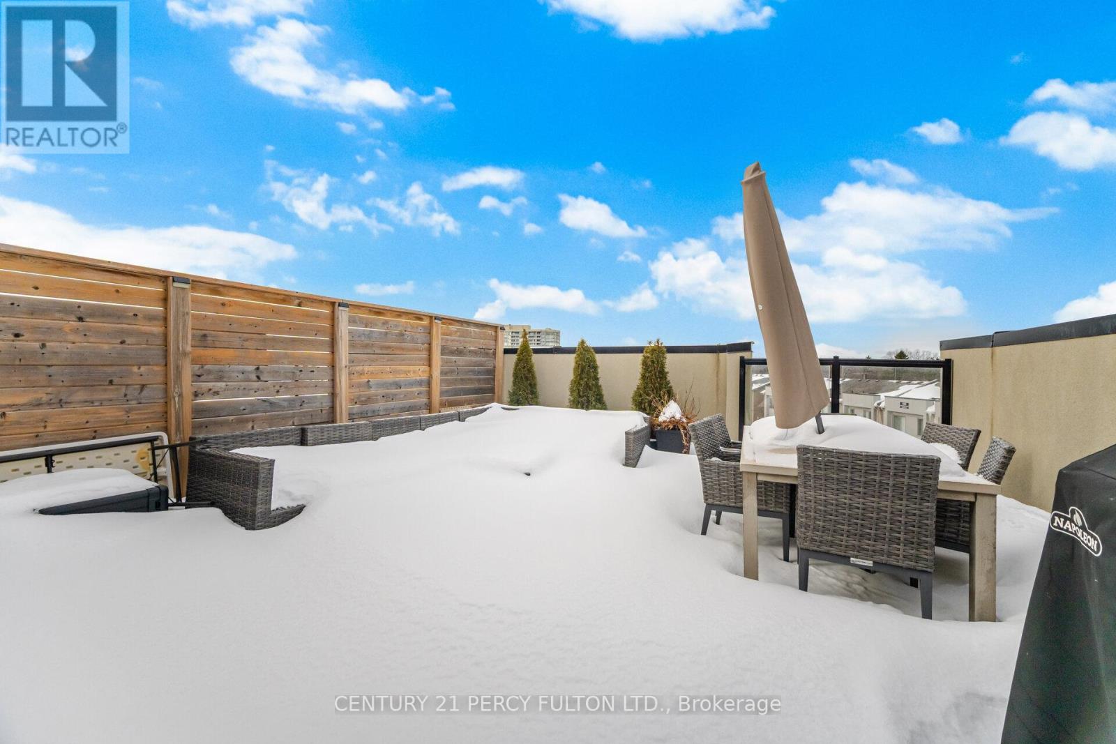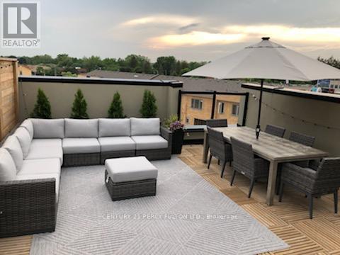 Rare End Unit Townhouse in Highly Desirable Pickering Location * Open-Concept Layout * Private Rooftop Terrace * Modern Kitchen Featuring Quartz Countertops, Large Centre Island, Breakfast Bar & Custom Herringbone Tile Backsplash * Laminate Flooring Throughout * Pot Lights On Main Floor * Main Floor Walk-Out To Private Balcony * Spacious Primary Bedroom With His & Hers Closets * Upgraded Primary Ensuite With Stand Alone Glass Shower * Second Bedroom With Additional 3-Pc Bathroom * Gas Line For BBQ/Firepit & Water Line * Rooftop Office Setup With Desk Included If Desired * Exceptional Low-Maintenance Outdoor Living Space * Minutes To Hwy 401, Pickering GO Station, Pickering Town Centre, Restaurants, & Amenities * (42160433)