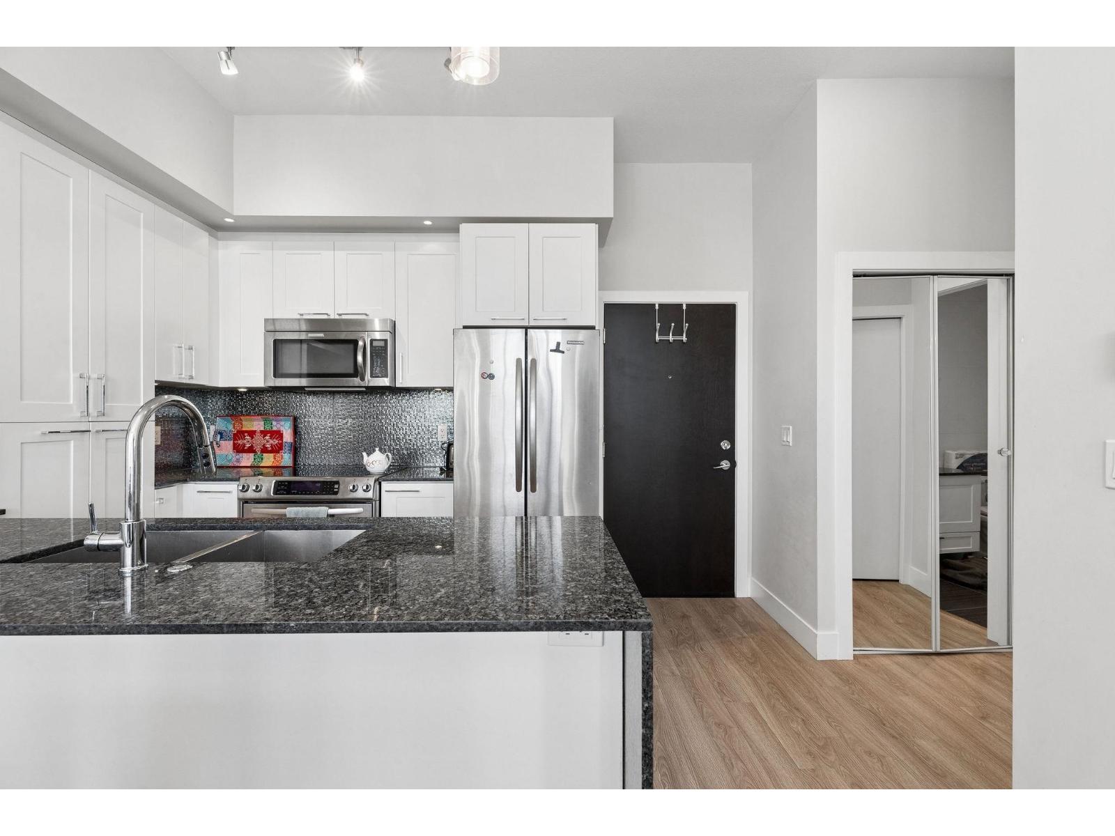 Top floor living in a highly walkable Langley location, surrounded by shopping, dining, and everyday conveniences. This bright home backs onto peaceful trees and an orchard, filling the space with natural light and privacy. Soaring ceilings enhance the open feel, while well maintained amenities add serious lifestyle value. Stay active in the full gym or yoga studio, let the kids burn energy in the play area, and host friends in the party room with a pool table. Overnight guests are easy with an on site guest suite. Ideal for first time buyers, investors, or downsizers seeking low maintenance living in a vibrant community, with quiet top floor positioning that blends comfort, convenience, and everyday ease. Call for a viewing! (32457333)
