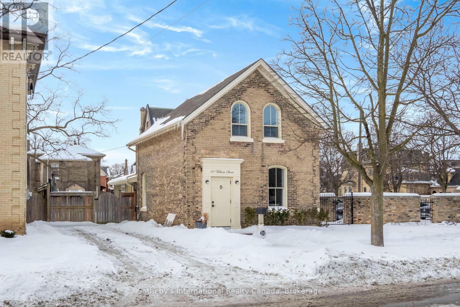 Welcome to 88 William Street in Brantford's coveted heritage district. Gracefully restored and thoughtfully reimagined, this circa 1840's distinguished century home blends timeless architectural character with refined modern living. Renovated to the studs with a long-term preservation mindset, the residence showcases triple yellow brick construction, +9-foot ceilings, custom-crafted windows, and meticulous attention to detail throughout. Its transformation formed part of the celebrated "88 William St. Project," featured on Rogers TV and the Designer Channel. The main level unfolds into a bright, elegant living space where classic proportions meet contemporary design. Elevated trim work, curated finishes, and exceptional craftsmanship define every room. A well-appointed kitchen with stone counters, stainless appliances, gas range plus a convenient main-floor laundry, and functional mudroom enhance everyday living while maintaining the home's historic charm. Outdoors, a fully fenced and professionally landscaped backyard offers a private retreat on an exceptionally generous lot-framed by the enduring architecture of this historic streetscape. The home features two spacious bedrooms and a versatile den ideal for a home office or reading room. A full, unfinished basement presents an opportunity to tailor additional living space to your needs. With +/-1,300 square feet of carefully curated interiors, this residence offers a rare opportunity to own a turnkey heritage property in one of Brantford's most desirable and established neighbourhoods-where character, craftsmanship, and lifestyle converge. (42160674)