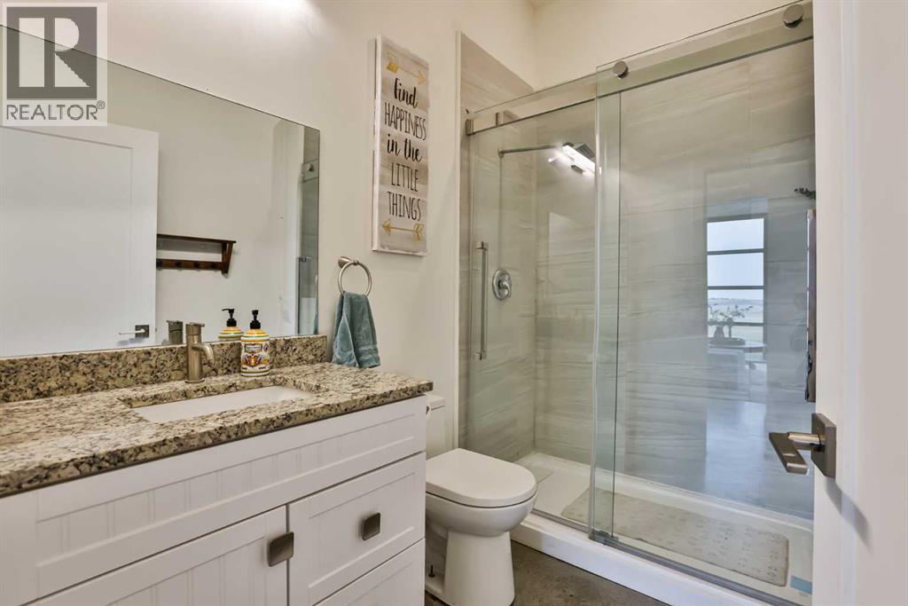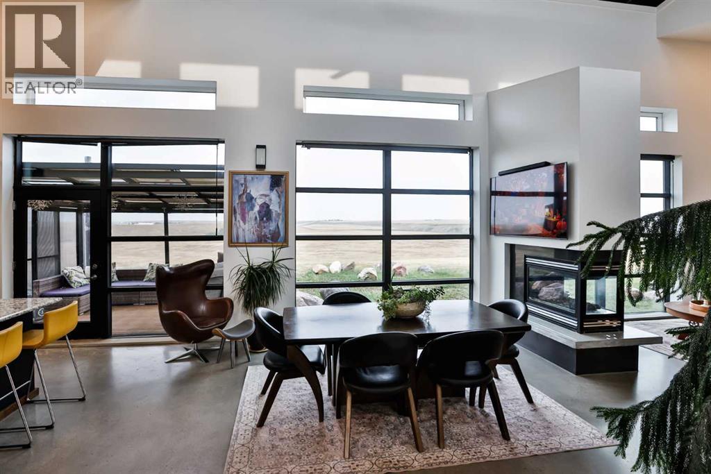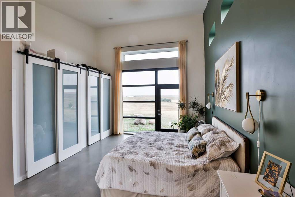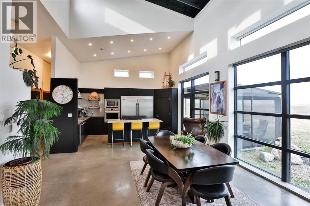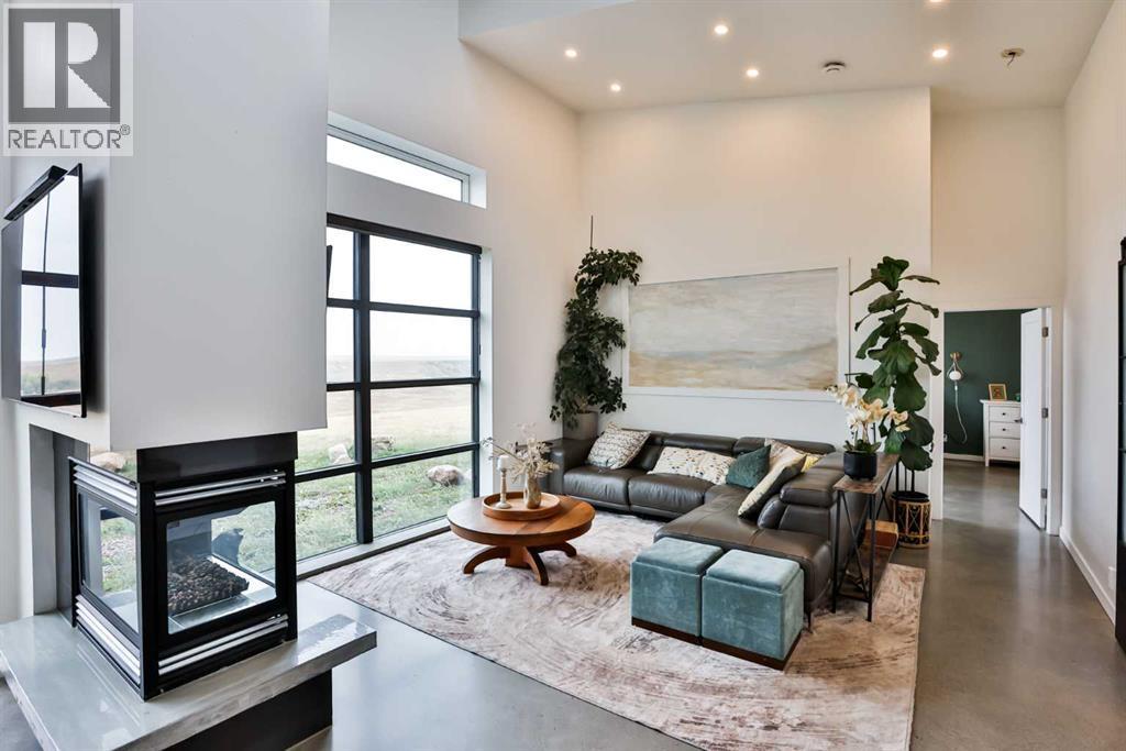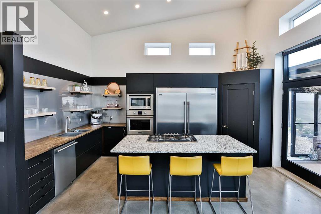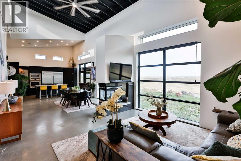 Welcome to 309 Alta Vista Blvd., a modern ranch-style oasis perfectly situated on 13.49 picturesque acres in Carmangay, Alberta. Backing onto the serene Coulee and the soothing flow of Little Bow River, this property offers the intimate charm of small-town living with all the comforts of modern design—only 40 minutes from Lethbridge and 15 minutes from Vulcan.Built in 2018, the slightly over 1,700 ft² bungalow marries contemporary style with top-tier construction. The home features durable ICF block walls paired with Lux triple pane windows and spray foam insulation, ensuring energy efficiency and year-round comfort. Enjoy the luxury of in-floor heating and a state-of-the-art HRV system that circulates fresh air throughout the residence. An on-demand hot water system and 200 amp service. Step inside to discover a modern aesthetic defined by concrete floors, a shed roof vault design with additional transom windows, and a striking three-sided fireplace that creates a captivating focal point in the living area. The expansive kitchen is designed for the modern chef, boasting a built-in fridge & freezer, wall oven & microwave, five-burner gas cooktop, butcher block countertops, granite counters, stainless steel backsplash, and a convenient corner pantry—perfect for gourmet gatherings and everyday meal prep.The soaring ceilings flow gracefully into the primary bedroom, a tranquil retreat with awe-inspiring views of the coulee. Elegant barn doors separate the spacious closets, the ensuite has double sinks, a large tiled shower and a thoughtfully placed window flood the space with natural light. Two additional bedrooms, divided by a stylish black metal and glass barn door, share a full bathroom featuring a generous five-foot tile shower, ensuring ample space for family or guests. Practicality meets design with abundant built-in storage right from the welcoming entrance, complemented by a laundry room and a discreet mechanical room tucked behind the kitchen. For those loo king to harness the beauty of nature, the property offers access to the river. All the conveniences of modern town living are at your fingertips with in-town water. Outside, enjoy low maintenance yet eye-catching curb appeal. The exterior is finished in dark, rich colours accented with textured steel details. A detached triple-car garage spans an impressive 32 feet wide by 24 feet deep, featuring three overhead doors—one operated remotely—for all your storage and vehicle needs. Between the home and garage, a specially protected area hosts a hot tub, windscreen, and fire pit area, creating an ideal outdoor retreat.The natural landscaping around the house artfully blends with the surrounding coulees. Larger decorative shrubs add captivating texture while maintaining a seamless connection to the land, making this property a perfect sanctuary for those who appreciate modern comforts amid rustic beauty. (31653491)