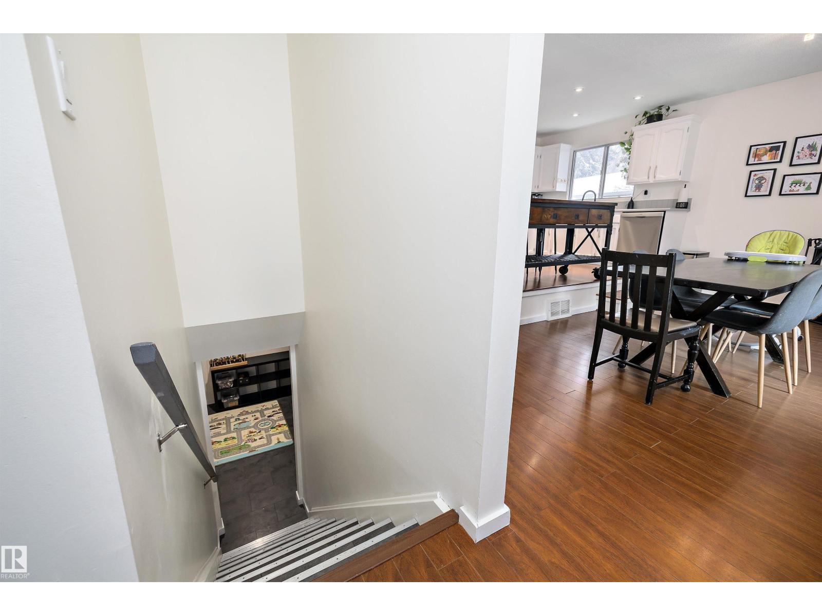Beautifully renovated home on a tree-lined street in desirable Braeside, steps to the river valley, trails, schools, parks, shopping, festivals and the St. Albert Farmers’ Market. Outstanding curb appeal with mature landscaping welcomes you into a bright, spacious living room filled with natural light. The updated kitchen features white cabinetry, gas stove, upgraded appliances and fixtures, and a movable island—perfect for everyday living and entertaining. Sunken dining room offers a cozy fireplace, patio doors and space for large gatherings. The main floor includes a 4-piece bath, two bedrooms and a primary suite with 2-piece ensuite. Fully finished basement features a family/media room, additional bedroom, 2-piece bath, laundry and ample storage. Recent upgrades include new shingles and hot water tank. Enjoy a private backyard oasis with mature trees, perennials, garden space, grapes, raspberries and a large patio. Move-in ready in one of St. Albert’s most sought-after neighbourhoods! (33841515)