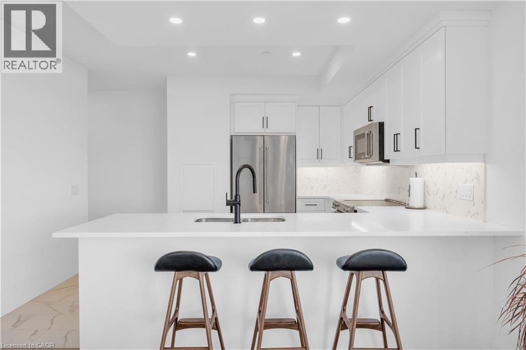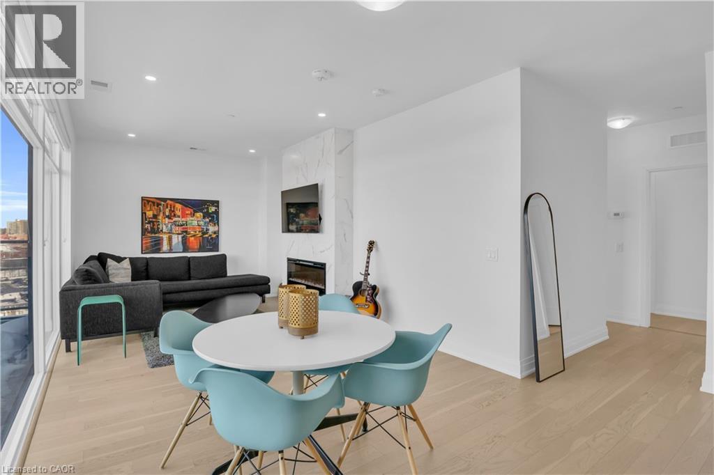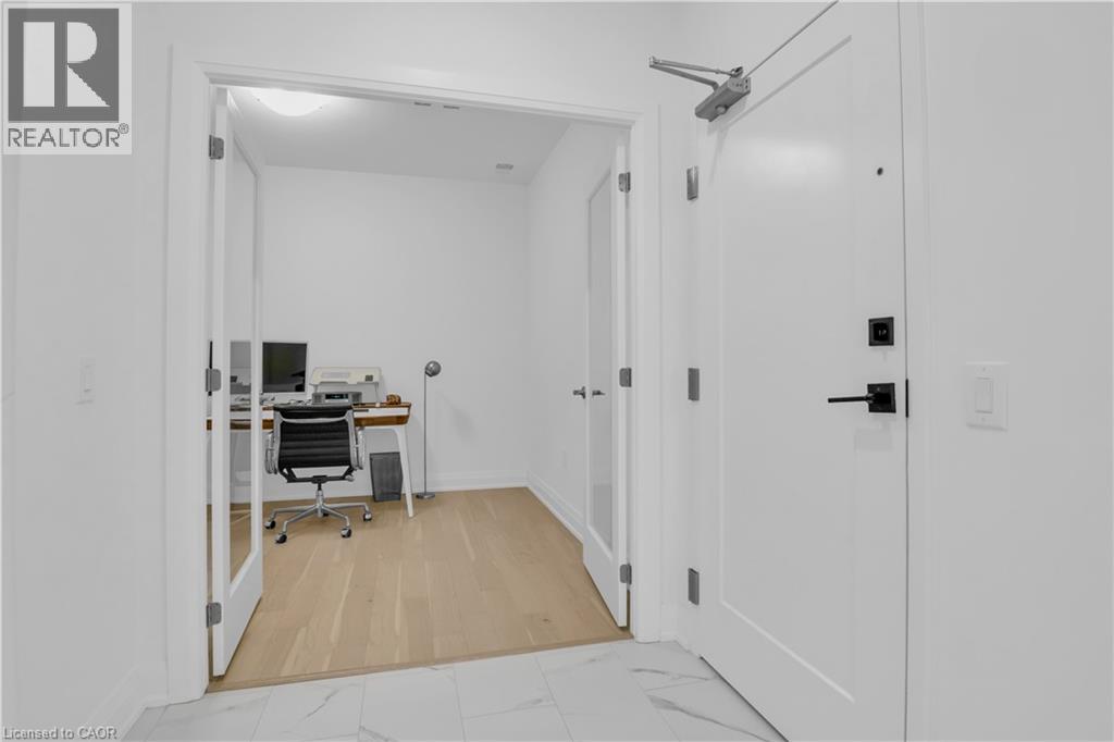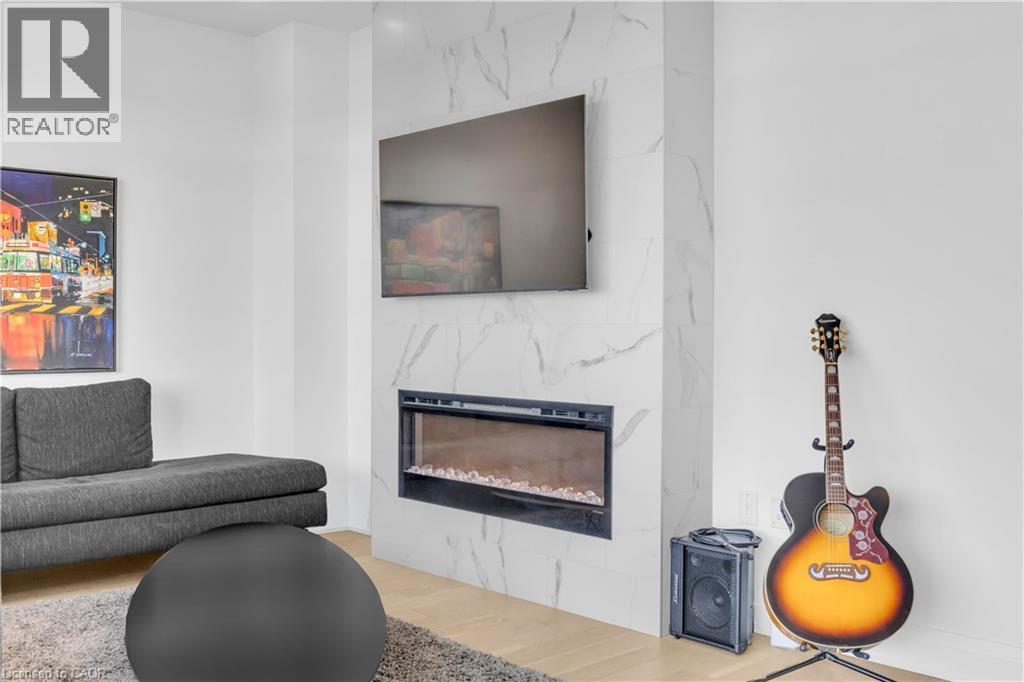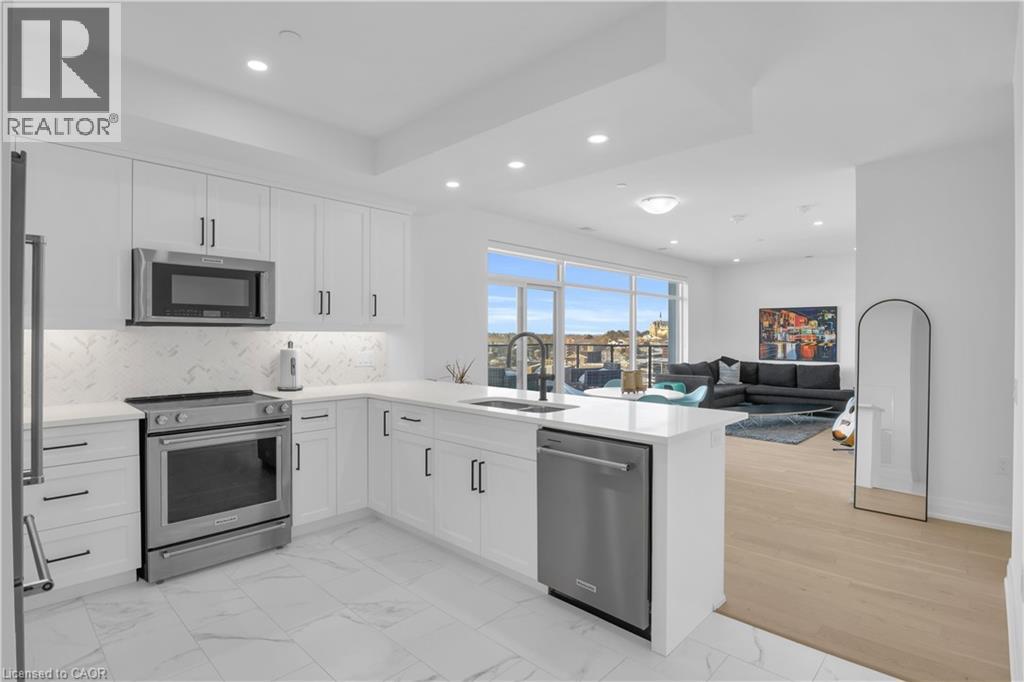 Welcome to 1105-71 Wyndham Street South, an elegant two bedroom plus den, two bathroom residence offering over 1,300 square feet of well-appointed living space in one of Guelph’s most prestigious condominium communities. Ideally situated along the Speed River and just steps to downtown, this suite combines generous proportions with a refined waterfront setting. A welcoming foyer with ample closet storage leads to a private den enclosed with French doors, ideal as a dedicated home office, reading retreat, or quiet lounge. This flexible space adds functionality while maintaining separation from the main living areas. The open-concept kitchen, dining, and living space is designed for comfortable everyday living and hosting. Large windows bring in natural light and showcase river views. The kitchen features built-in stainless steel appliances, quartz countertops, and a peninsula with seating. The living room is centred around a gas fireplace with a marble surround, creating a warm focal point. Step out to the expansive private terrace with views of the Speed River, offering ample space for outdoor seating and dining. The primary suite also enjoys its own private balcony overlooking the river, along with a walk-in closet and ensuite bath. A spacious second bedroom is located near a four-piece bathroom, and ensuite laundry provides added convenience. Residents have access to premium amenities including a library, games room, exercise room, and billiard room. With over 1,300 square feet, multiple outdoor spaces, and a walkable location close to downtown shops, dining, and trails, this residence presents an exceptional opportunity in the heart of Guelph. (70173271)