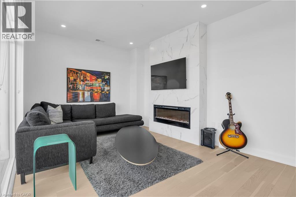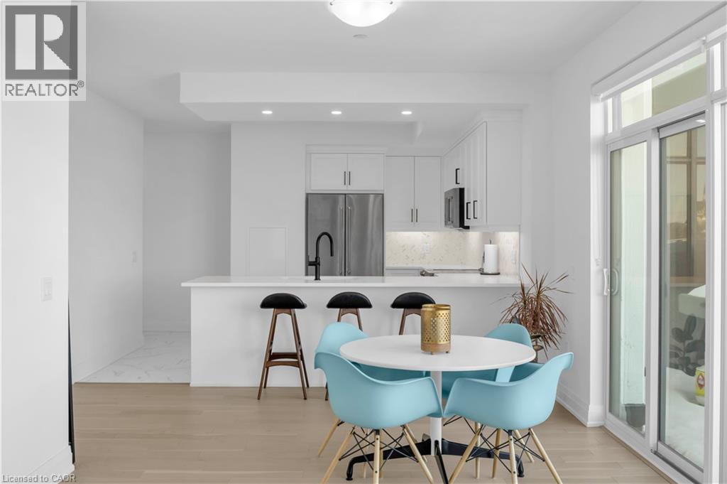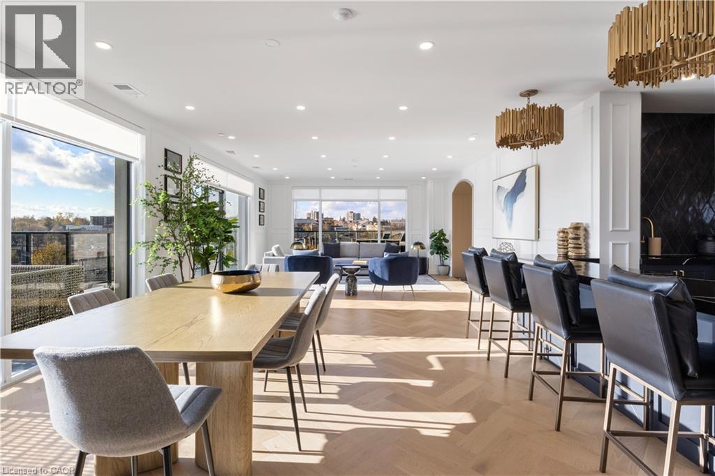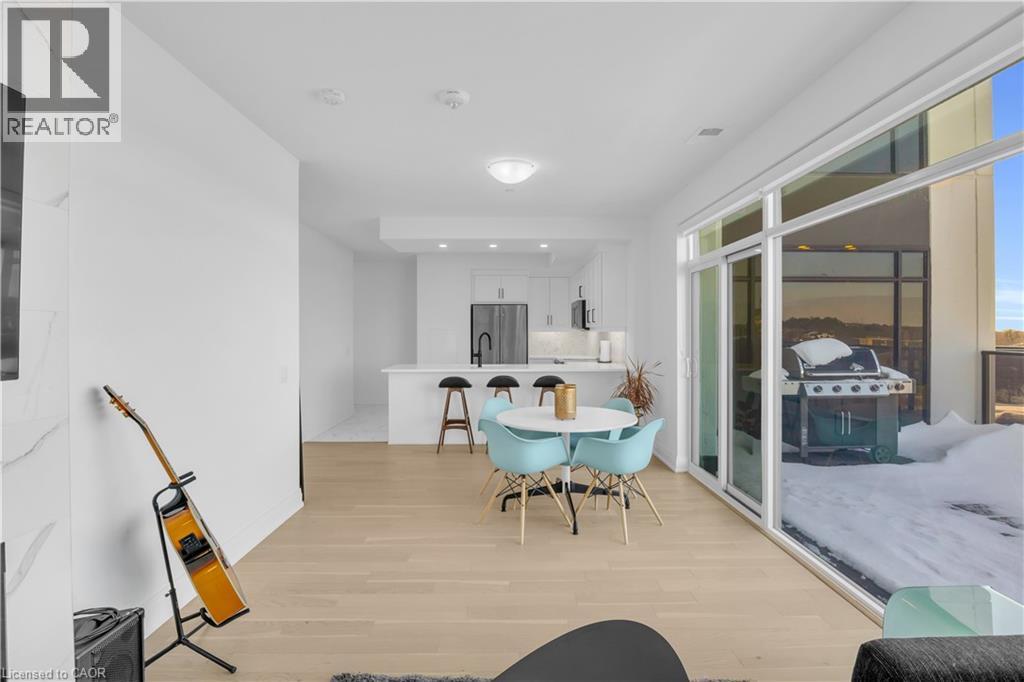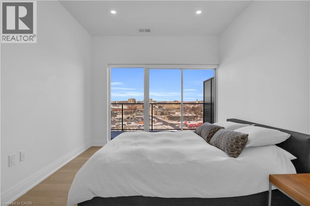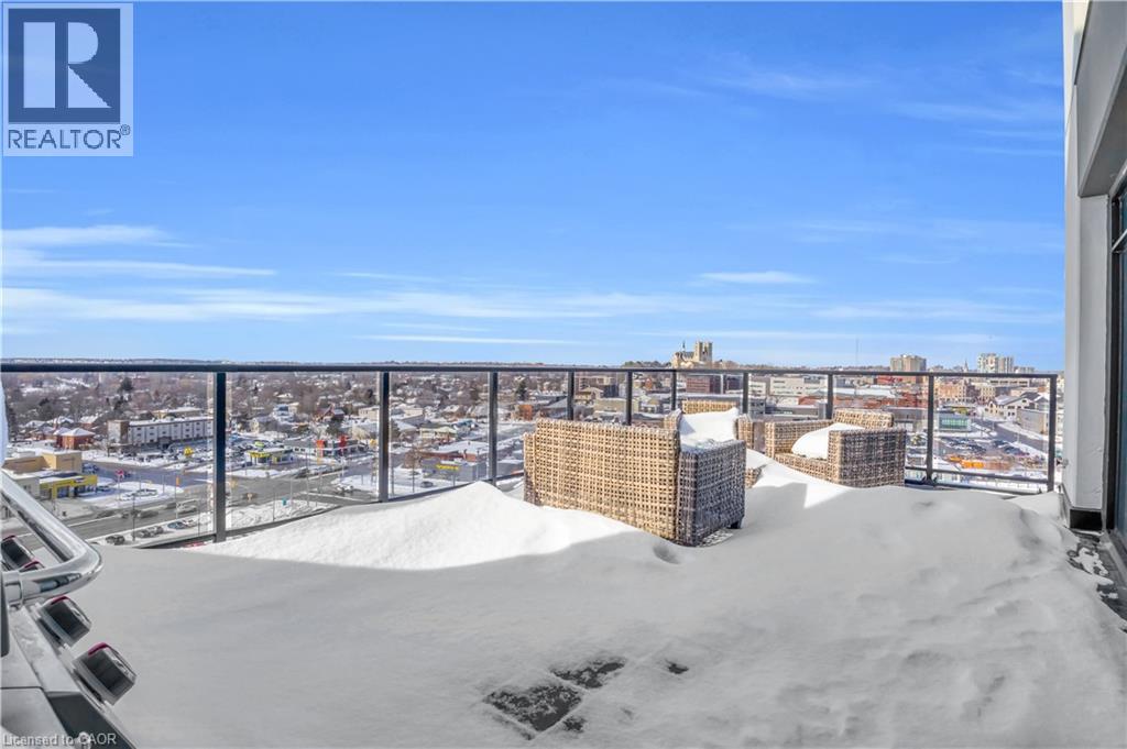 Welcome to 1105-71 Wyndham Street South, an elegant two bedroom plus den, two bathroom residence offering over 1,300 square feet of well-appointed living space in one of Guelph’s most prestigious condominium communities. Ideally situated along the Speed River and just steps to downtown, this suite combines generous proportions with a refined waterfront setting. A welcoming foyer with ample closet storage leads to a private den enclosed with French doors, ideal as a dedicated home office, reading retreat, or quiet lounge. This flexible space adds functionality while maintaining separation from the main living areas. The open-concept kitchen, dining, and living space is designed for comfortable everyday living and hosting. Large windows bring in natural light and showcase river views. The kitchen features built-in stainless steel appliances, quartz countertops, and a peninsula with seating. The living room is centred around a gas fireplace with a marble surround, creating a warm focal point. Step out to the expansive private terrace with views of the Speed River, offering ample space for outdoor seating and dining. The primary suite also enjoys its own private balcony overlooking the river, along with a walk-in closet and ensuite bath. A spacious second bedroom is located near a four-piece bathroom, and ensuite laundry provides added convenience. Residents have access to premium amenities including a library, games room, exercise room, and billiard room. With over 1,300 square feet, multiple outdoor spaces, and a walkable location close to downtown shops, dining, and trails, this residence presents an exceptional opportunity in the heart of Guelph. (70173271)