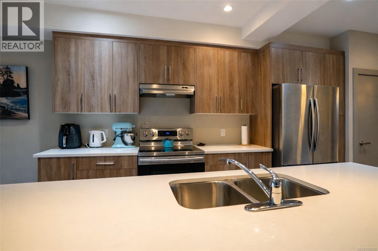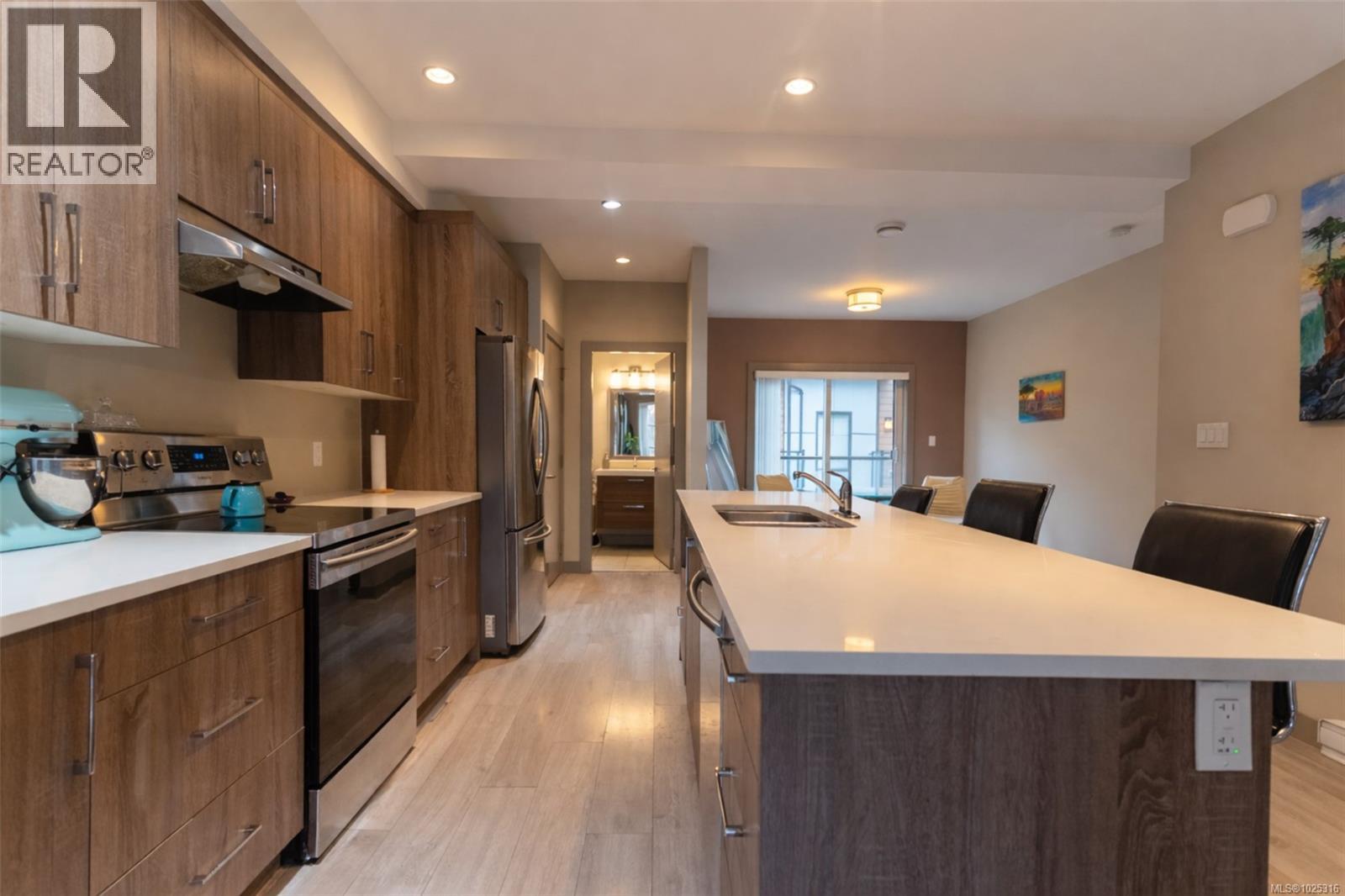 OPEN HOUSE Sun 11am-1pm. Welcome to this beautifully designed end-unit 3-bedroom, 3-bath contemporary West Coast–style townhome offering a bright, functional three-level layout in one of Langford’s most convenient locations. Thoughtfully designed with 9-foot ceilings, large windows, and open-concept living, this home delivers exceptional natural light and a spacious feel rarely found in townhome living. The main level features a stylish kitchen with stainless steel appliances, ample cabinetry, and an oversized island that flows seamlessly into the dining and living areas. An electric fireplace adds warmth and ambiance, creating an inviting space for everyday living and entertaining. As an end unit, this home benefits from additional windows and enhanced privacy. Enjoy outdoor living on two private balconies located on both sides of the home, providing excellent airflow and additional natural light throughout the day. Upstairs, the upper level offers three well-appointed bedrooms, including a spacious primary suite with vaulted ceilings, walk-in closet, and private ensuite. Two additional bedrooms provide flexibility for families, guests, or home office use. The lower level includes a versatile den, ideal for a home office, gym, guest space, or media room, offering excellent separation between living and sleeping areas. This three-level design allows for privacy and adaptability as lifestyle needs evolve. Located close to major shopping hubs, Costco, grocery stores, restaurants, cafés, parks, schools, and transit, this home offers a true convenience-first lifestyle. Easy access to recreation, trails, and commuting routes makes daily living effortless. With strong rental demand, proximity to key amenities, and a flexible layout, this property presents excellent long-term value and appreciation potential. A perfect opportunity for first-time buyers, families, professionals, or investors seeking comfort, functionality, and location. (30393085)