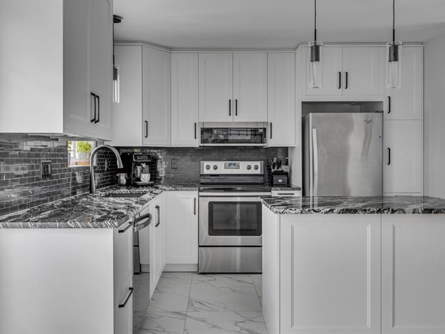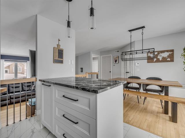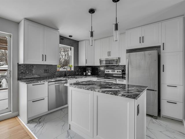 Superbe propriété vous offrant 3 chambres dont 2 au rdc, magnifique cuisine rénovée avec comptoir en granite, planchers de bois, 2 salles de bains, grande salle familiale au sous-sol, espace bureau supplémentaire parfait pour le télétravail, thermopompe murale, façade en brique, cour intime entourée de haies de cèdres matures, secteur recherché à proximité des services, de l'autoroute et des sentiers La Balade. (39558852)