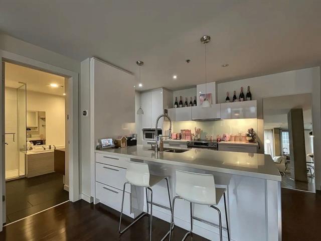 Very bright and spacious one-bedroom condo at 90 Prince in the Cité Multimedia M9 project. Featuring large windows, abundant natural light, and 9-foot ceilings. Modern kitchen with quartz countertops and designer backsplash. Bathroom with separate shower. Air conditioning, programmable thermostat, and storage space included. Parking spot included. Well-maintained building with gym. Ideally located in Old Montréal, close to restaurants, bike paths, and all urban amenities. A perfect blend of comfort, style, and location. Available immediately. https://my.matterport.com/show/?m=7yBVCZALuy6 (44048585)