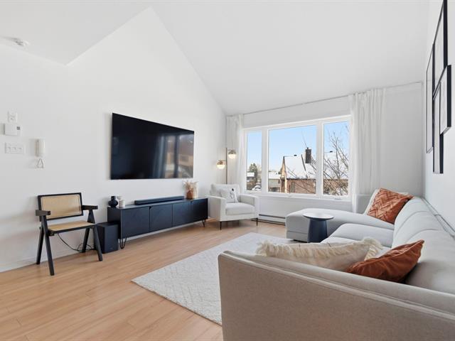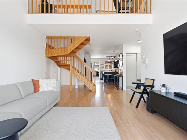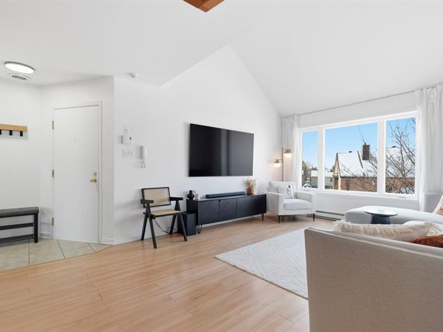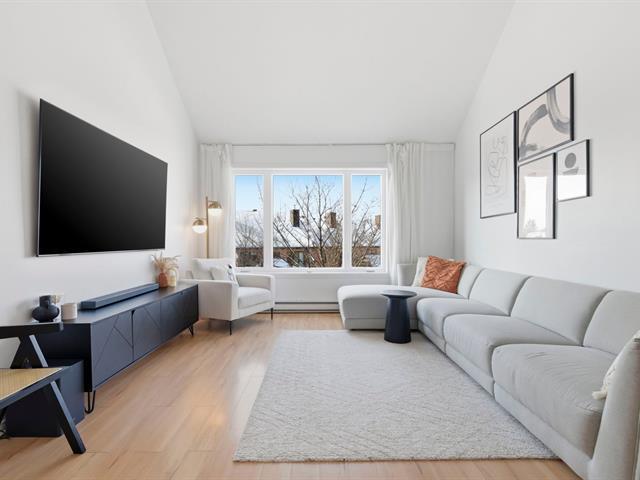 Rare find on the top floor--two-level condo! Over 1,200 sq. ft. bathed in natural light, offering two bedrooms + versatile mezzanine (third bedroom and office), private terrace, and balcony adjacent to the kitchen. Carefully maintained unit, airy space, and warm atmosphere in a sought-after area of Saint-Hubert. A standout opportunity on the market. A rare find in the area, offering space, light, and versatility -- one visit will convince you! (46345000)