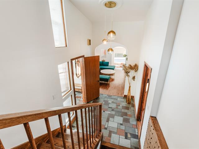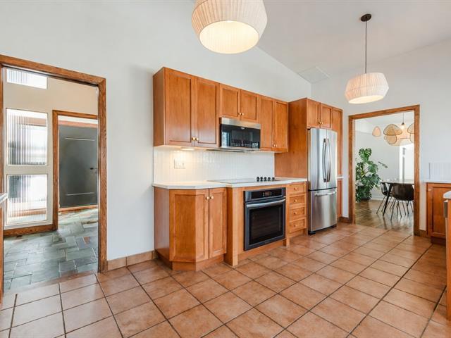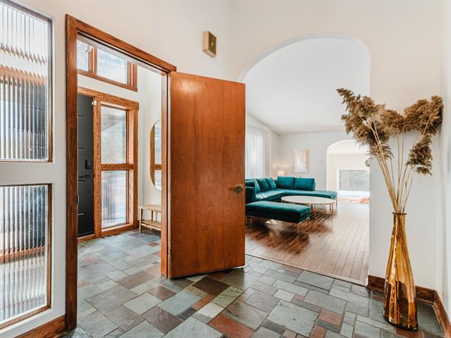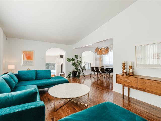 Résidence mid-century intemporelle au cachet distinctif, implantée sur un terrain mature de 8 646 pi². Architecture en paliers offrant des espaces lumineux et une aire de vie ouverte. La véranda au rez-de-jardin, avec foyer central et vue sur la piscine, constitue le coeur de la maison. Elle propose 5 chambres ainsi qu'une au sous-sol. Marquise d'auto et clôture en cèdre rouge intégrées à l'aménagement extérieur. Améliorations notables : fournaise 2022, thermopompe centrale 2023, piscine optimisée en 2024, planchers chauffants et borne de recharge. Située dans un secteur familial recherché près des écoles et services. (51088217)