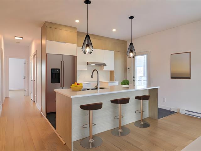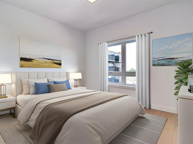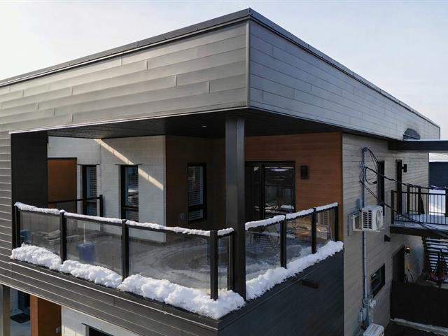 **Magnifique condo bâti en 2021 dans un nouveau secteur à proximité de tous les services.** Condo de 2 chambres et 1 salle de bain avec belle grande terrasse 15'x19', 2 stationnements extérieurs (filage pour borne électrique). Buanderie dans une pièce séparée et grand garde-manger style walk-in. Planchers chauffants à la salle de bain et à la cuisine. **1154pc** (51814751)