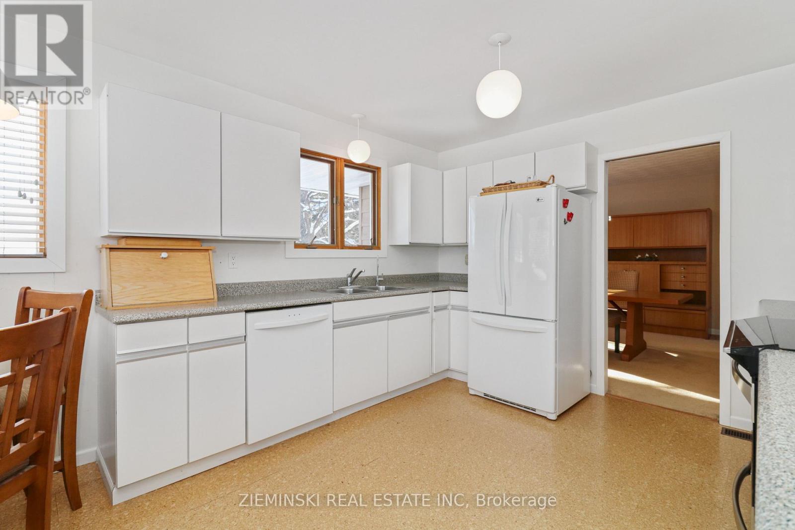 This charming brick bungalow occupies a prime corner lot in a peaceful residential neighbourhood with mature trees in the partially fenced backyard. A 16' x 24' detached garage with automatic door opener adds excellent convenience. Built in 1979 with timeless design and quality materials, the home features cork flooring in the kitchen, ceramic tile at the front entrance, and thoughtful window placement that fills rooms with natural light.The practical side entrance opens directly to the kitchen, living room, and basement-ideal for busy families. In the kitchen, a cozy dining nook captures bright afternoon sun, while a separate formal dining room provides space for gatherings.The main floor includes a generous primary bedroom with a large 5.5' x 6' walk-in closet, two additional bedrooms, and a 4-piece bathroom. Downstairs, the finished basement delivers ample family space: a family-sized rec room with custom built-in shelving, a wood-burning fireplace, and a full wet bar (bar fridges included). It also features a fourth bedroom, 3-piece bathroom, laundry/utility room, and a workshop/storage area. Original owner! This well-maintained gem offers enduring appeal and functional space-your timeless home awaits. (42163434)