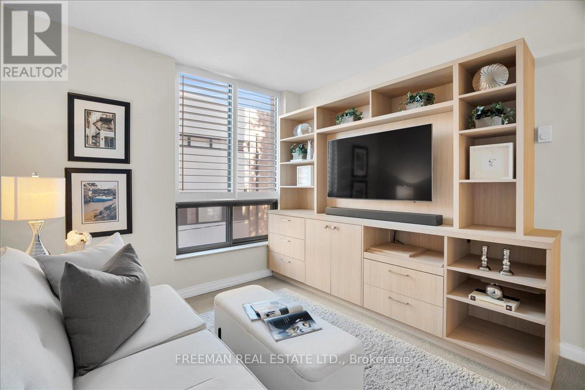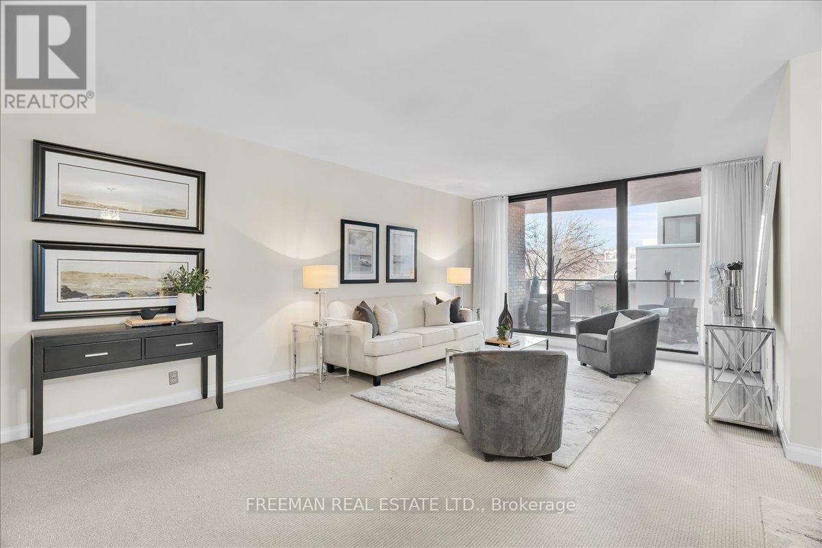 Coveted and Super-Accessible Forest Hill Village cul-de-sac location, The Lonsdale House pairs privacy within steps of all the amenities you need in the Lower Village. Backing toward the ravine paths, this updated suite also enjoys peaceful exposure with a generous covered balcony with enhanced seclusion. Offering three bedrooms, or two plus a den, the layout adapts easily to your needs. The welcoming and spacious foyer provides proper proportions with graceful separation from the living space, and opens to generous living and dining areas, flooded with natural light, designed for both everyday comfort and easy entertaining. Thoughtful built-ins and extensive storage make downsizing feel seamless. Spacious principal rooms support both relaxed living and entertaining, complemented by radiant heated floors for year-round comfort. Ready for thoughtful upgrades and personal touches to make it your own, but ready for turnkey living as well. The location is a true advantage. Walk to the many shops, restaurants and cafés of the Lower Village along Spadina Road, banks, pharmacy, and Loblaws. The St. Clair West subway entrance on Tichester is 2 blocks away, offering direct access downtown and uptown. With pool, gym, sauna, party room, visitor parking, and concierge, The Lonsdale House delivers community, security, and ease in one distinguished address. The condominium sits adjacent to nearby parks providing immediate connection to green space and ravine walking trails. You have found a residence that allows you to simplify without compromise, live quietly at the centre of it all, and settle into an established and well-networked community to call home. (42163584)