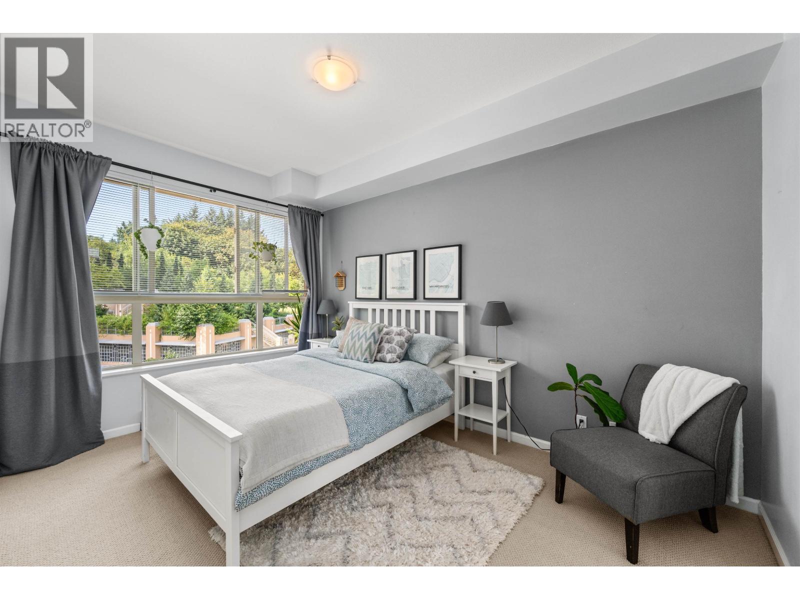 Elevated Living in Victoria Hill - A Rare Top Floor Retreat! Welcome to The Grove, this west-facing top floor level 2 bed, 2 bath home boasts soaring 12ft vaulted living room ceilings and oversized windows, filling the open-concept space with warm southwest light. The stylish kitchen features granite counters, stainless steel appliances, and sleek cabinetry, while the split-bedroom layout offers maximum privacy with two walk-in closets. Laminate floors flow through the bright living/dining area with upgraded lighting, opening to a sunny balcony. Immaculate condition with in-suite laundry (new modern washer/dryer), 2 parking stalls & storage. Exceptional amenities with full gym, theatre, lounge, library, basketball court & more. Steps to Queens Park, shops, dining, SkyTrain & transit. (32458821)