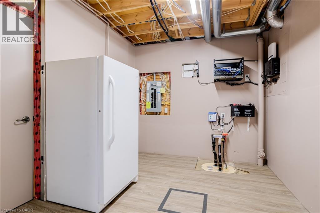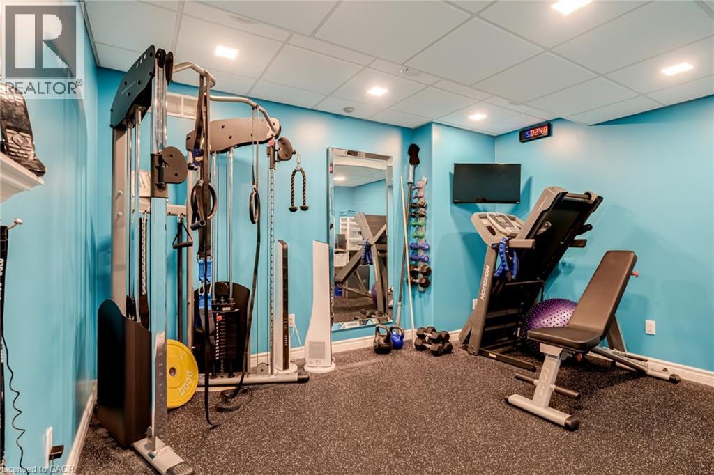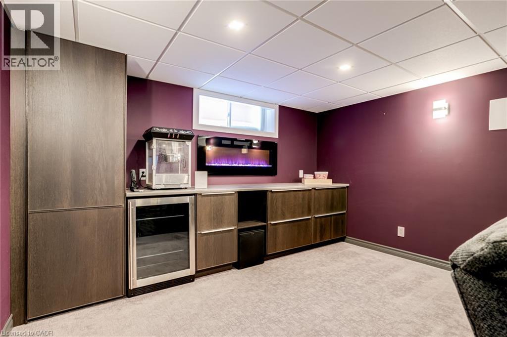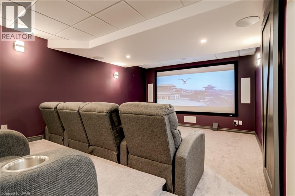 Custom designed two-storey home set on a premium 40 x 147 ft lot in the heart of Ancaster Meadowlands. Ideally located just steps to top-rated schools, parks, sports programs, shopping, dining, and every convenience at the Meadowlands Power Centre—with quick highway access—this is family living without compromise. Freshly painted throughout, the home feels new and move-in ready. The main level offers 9-foot ceilings, rich hardwood, and a striking double-sided gas fireplace that anchors the functional open-concept living spaces. The eat-in kitchen has been thoughtfully updated with two-toned cabinetry, quartz counters, and sleek black stainless-steel appliances. Upstairs, four spacious bedrooms provide flexibility for growing families, three featuring walk-in closets with custom organizers, and a 4-piece main bathroom. The primary suite is a private retreat complete with its own gas fireplace, spa-inspired ensuite, and the convenience of in-suite laundry. The fully finished lower level sets this home apart. It has been sound insulated with a raised ceiling and larger windows. Designed for both wellness and entertainment, featuring a dedicated home gym with commercial-grade flooring and a private home theatre with stacked recliner seating and a built-in bar. There is also a fifth bedroom or home office with a built-in desk and storage. What truly distinguishes this property are the premium amenities and advanced technology features: An EV plug in the garage, whole-home generator, battery-backed sump pump, surge protection, security cameras, and upgraded high-efficiency mechanicals (furnace, ac, tankless hot water 2018) provide a level of performance and peace of mind typically not found at this level. The backyard completes the lifestyle—offering a hot tub, pergola, gas BBQ hookup, and designer shed, creating a private outdoor retreat ideal for entertaining. A luxurious family-friendly opportunity in one of Ancaster’s most desirable neighbourhoods. (70174834)