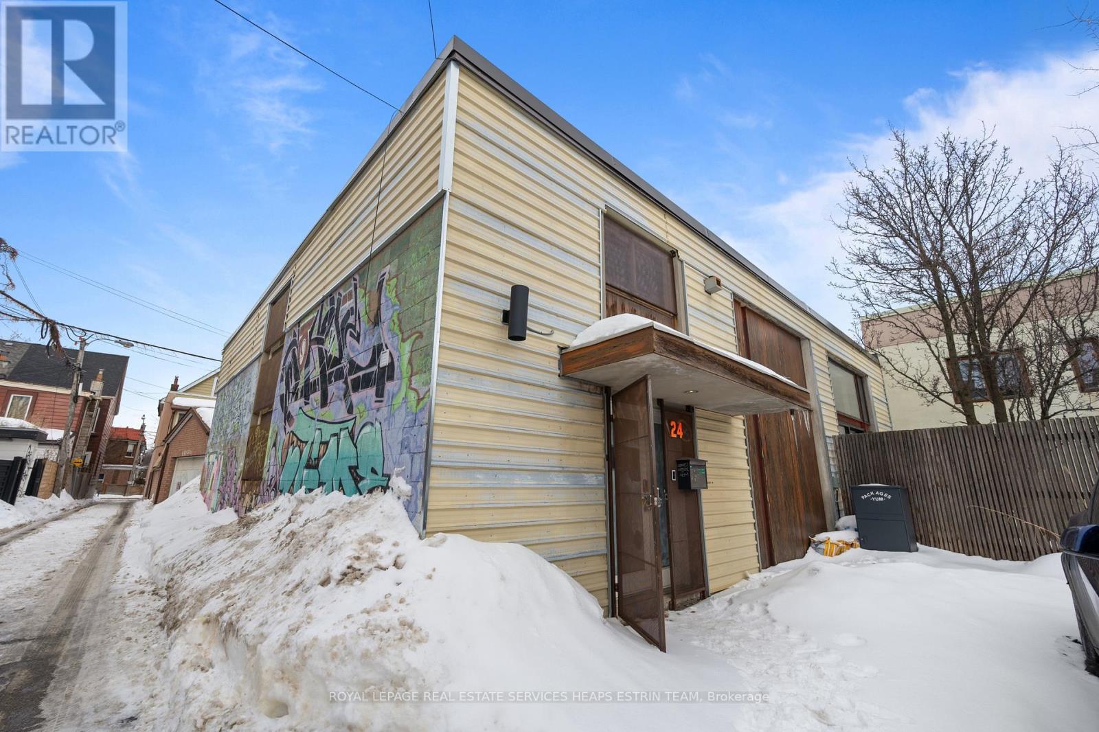 Tucked quietly away from the bustle of downtown, 24 Treford Place is a rare west-end offering - a landmark urban villa in the heart of Trinity Bellwoods and Little Italy. Offered as a luxury short-term furnished lease, this detached residence pairs an authentic industrial studio with a serene, California-inspired home, creating a one-of-a-kind live/work retreat.The industrial volume is dramatic and light-filled, with soaring ceilings, polished concrete floors, and oversized windows framing the garden beyond. A generous open-concept layout allows for effortless living and entertaining - a chef's kitchen overlooking a dining area for twelve, and a living space anchored by a wood-burning fireplace. Above, a lofted office offers an inspiring place to work or create. Beyond - either connected seamlessly through the studio or accessed independently from the garden - the home unfolds as a calm, light-washed sanctuary. Wall-to-wall windows open to a beautifully enclosed garden complete with mature landscaping and a wood-burning sauna. Inside, multiple living areas and the thoughtful separation of space provide flexibility for family life or hosting guests. Private three-car parking with EV charger included. Zoned HVAC and radiant in-floor heating ensure year-round comfort. Steps to College Street, Ossington, Kensington Market, and Trinity Bellwoods Park, yet remarkably peaceful and private, this is a singular opportunity to experience refined west-end living in a truly distinctive and refined architectural setting. (42164485)