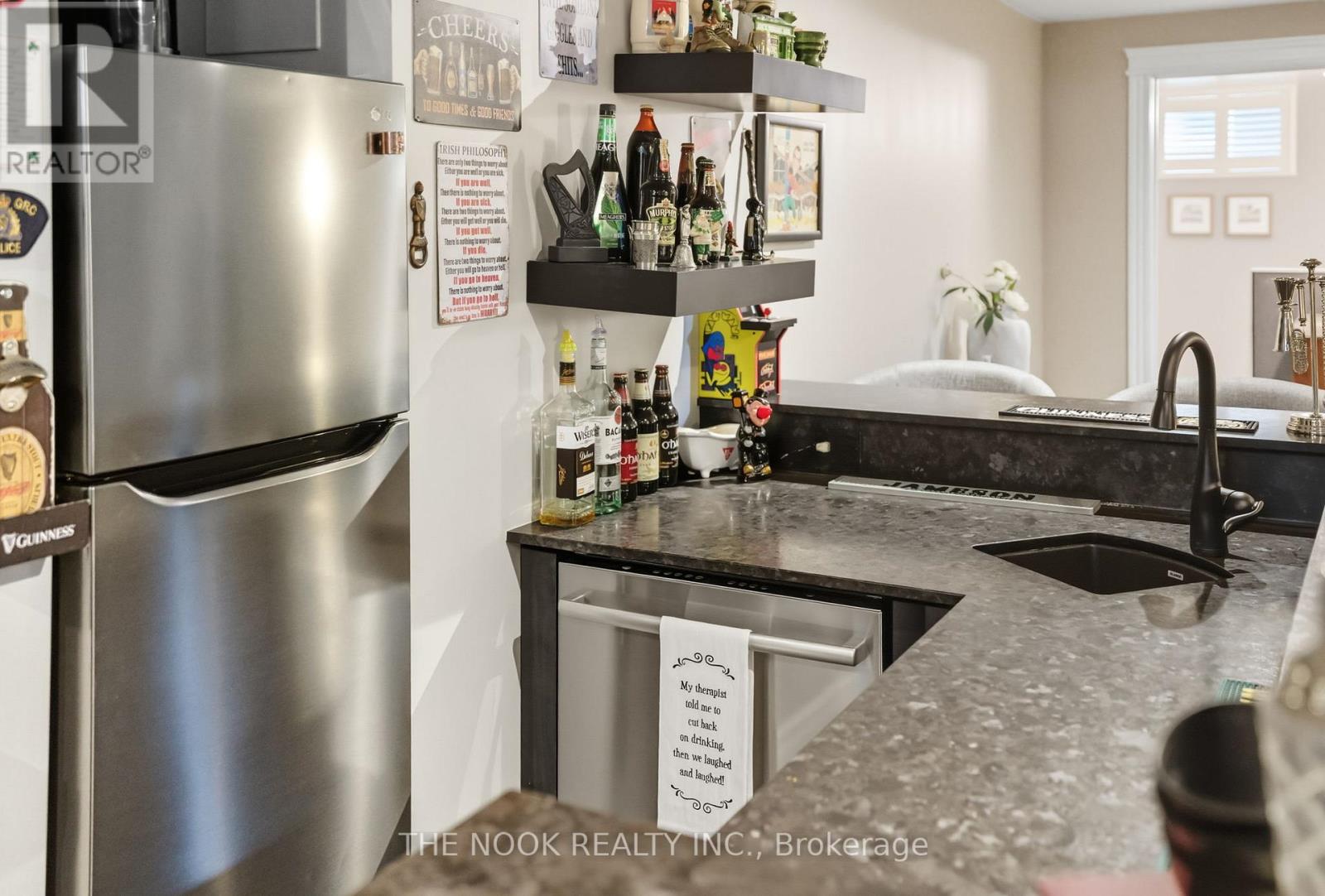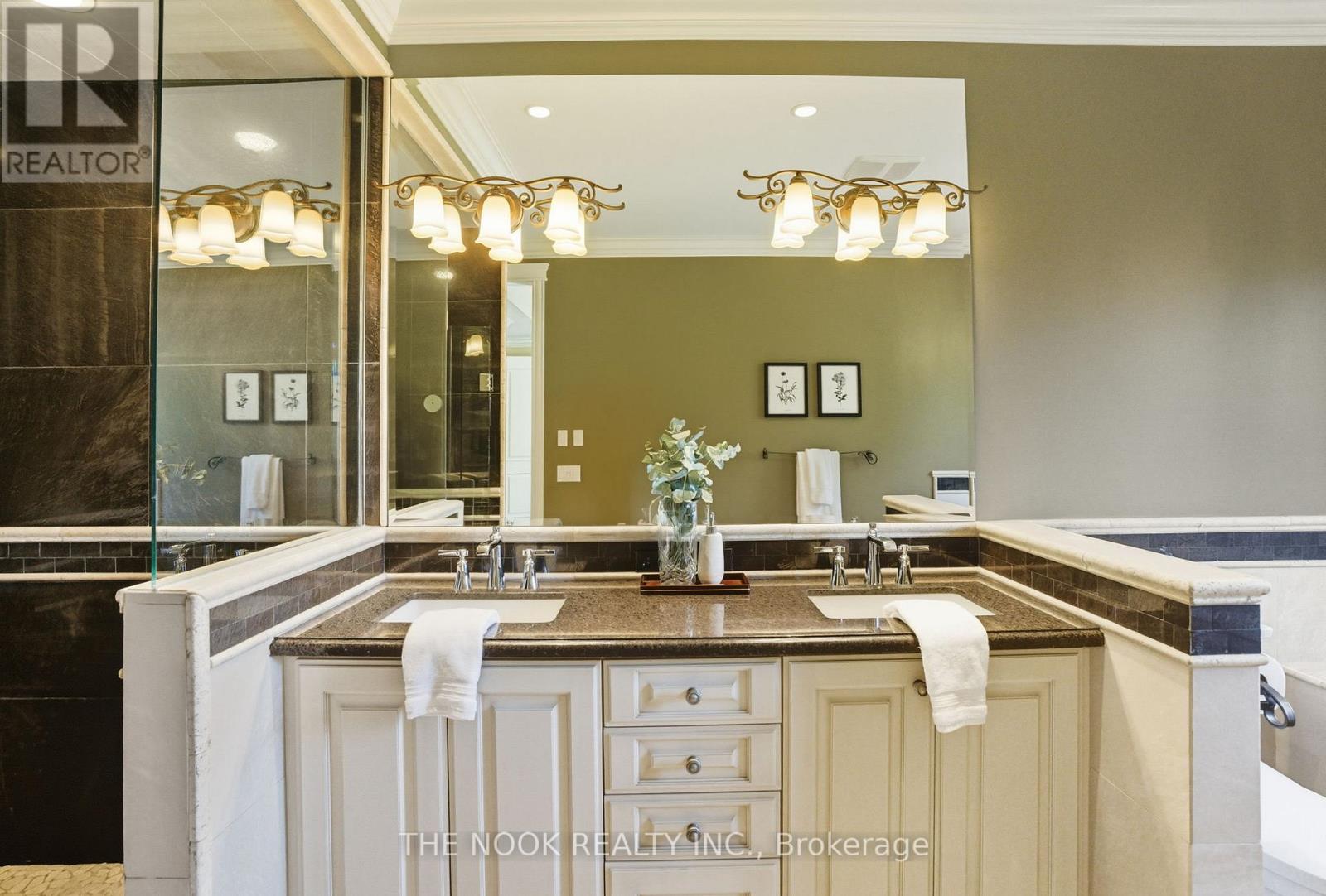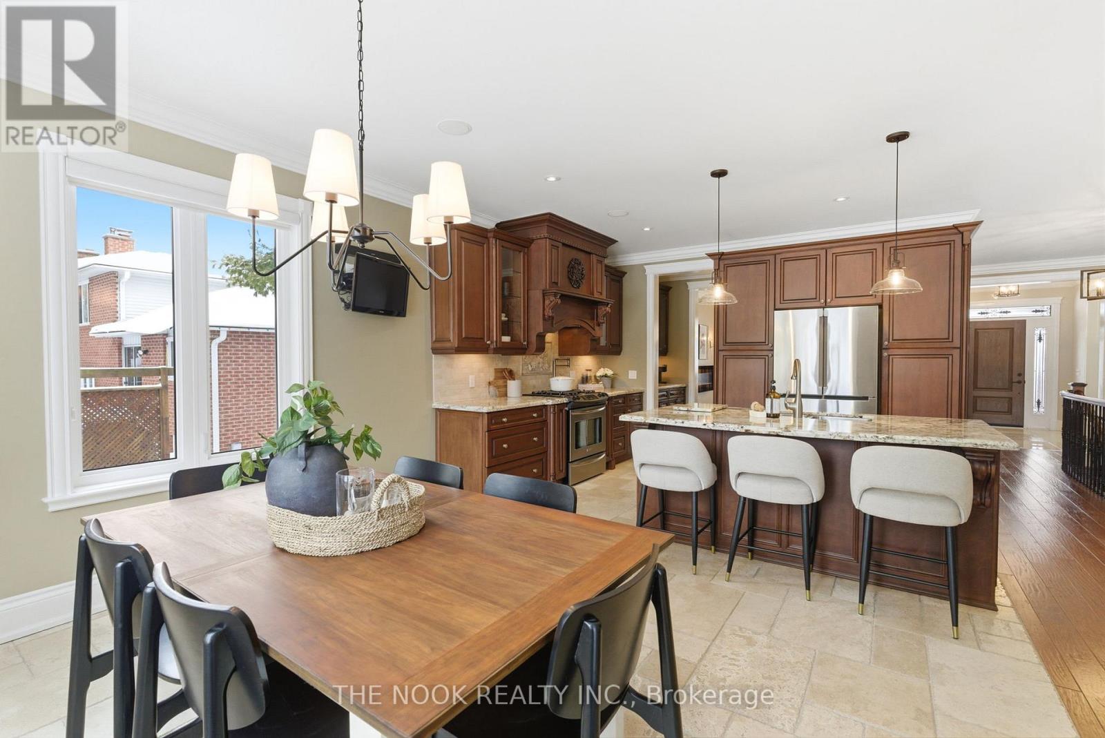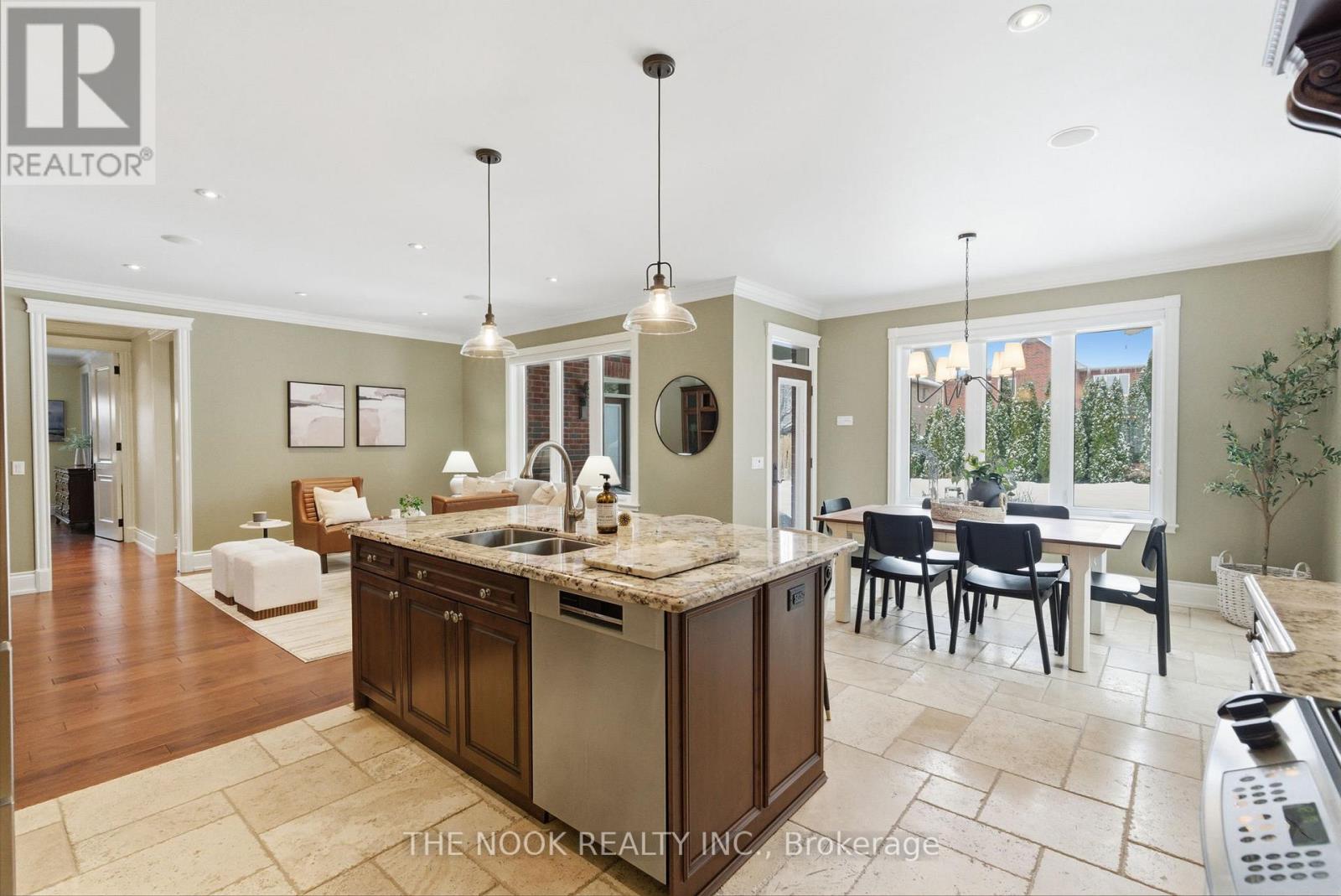 Custom-built Corvinelli bungalow featuring over 4400+ sqft of finished living space blending comfort, thoughtful design and unmatched quality.Nestled on a generous lot with mature trees this home offers a private retreat with modern luxuries. Exquisite craftsmanship is evident with high-quality upgraded casings, headers, 96" high by 13/4" thick solid doors on main floor and 80" high by 13/4" thick solid doors in basement & taller baseboards throughout.Crown moulding, 9' smooth ceilings, 5" vintage hickory hardwood enhances the warmth and sophistication of the main floor. Open concept living room with custom built-in flows into the family size eat-in kitchen with maple cabinetry, granite counters and honed travertine flooring flowing seamlessly into the butlers pantry with bar fridge, freezer and prep sink offering added convenience and style. Main floor laundry with granite counters, wall-to-wall uppers, under-mount sink and convenient garage access. Primary is a true retreat with a sophisticated tray ceiling, walk-out to covered patio, 5-piece ensuite with heated floors, deep soaker tub, glass shower w/hand held, 4 jets & rain shower, double vanity and spacious walk-in offering ample storage and a touch of luxury. Oak staircase with upgraded railing and wrought iron pickets lead to the expansive lower level with premium 7" Torlys cork flooring, spacious recreation room anchored by a dramatic floor-to-ceiling stone gas fireplace and wet bar featuring leathered granite, fridge and dishwasher. A dedicated gym area provides space for wellness and theatre room is complete with a gas fireplace offering a truly immersive cinematic experience. Lower level also includes two generously sized bedrooms, luxurious 4-piece bath with heated floors, cold cellar and ample storage. Second staircase provides convenient access to the exterior and oversized garage. From high-end finishes to its functional layout and peaceful setting this custom built home is a true oasis and rare (42165115)