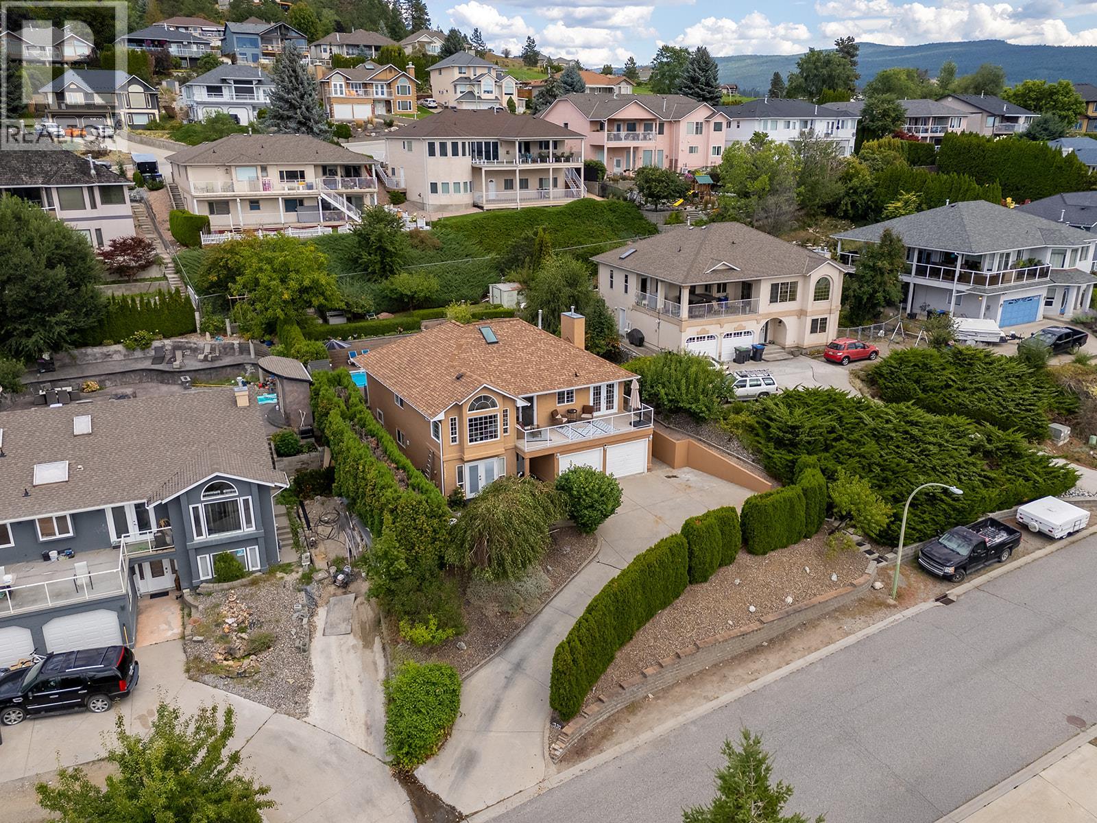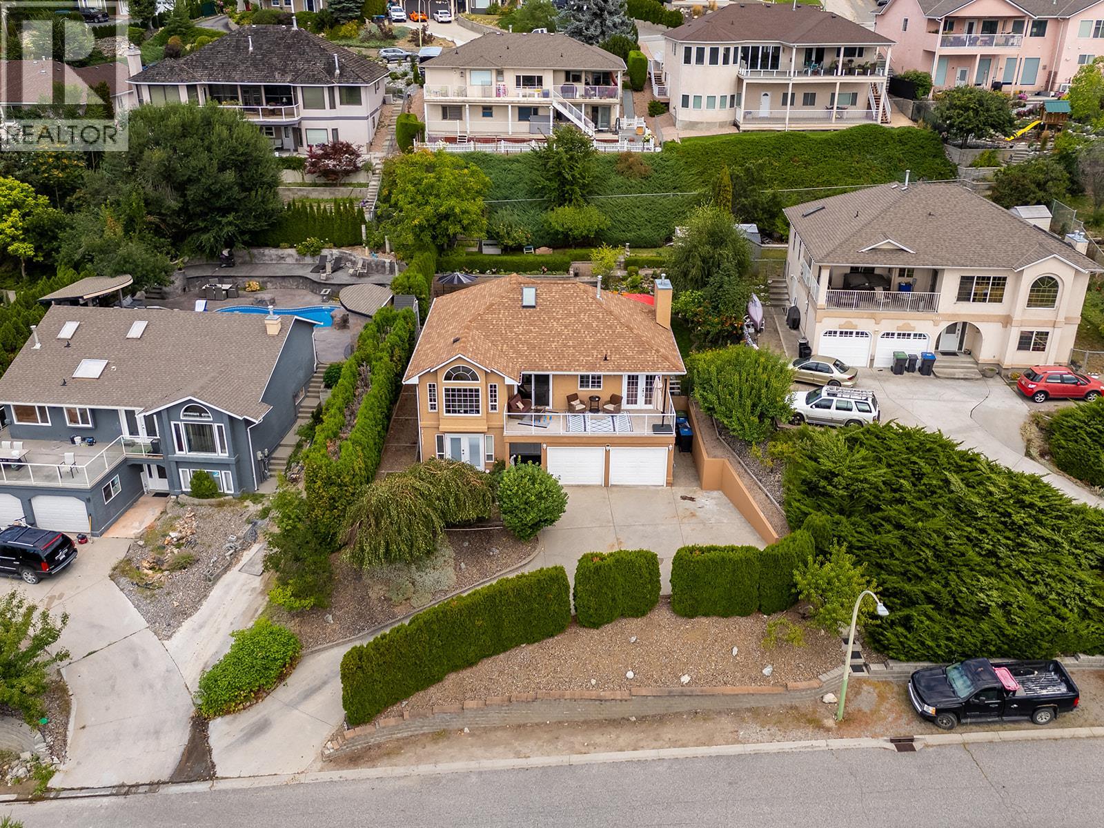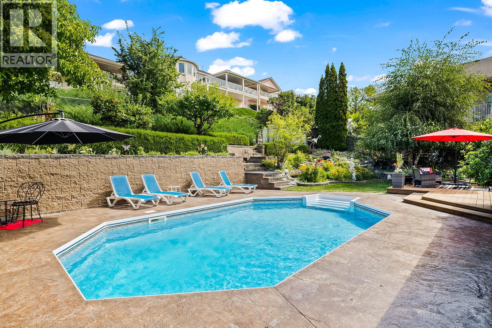 **MORTGAGE HELPER - HOME WITH LEGAL SUITE**. Beautifully cared-for single-family home in sought-after Toovey Heights, thoughtfully updated for comfort and style. The modernized kitchen boasts quartz countertops and stainless steel appliances, while the living room features arch-topped windows facing the lake, creating an intimate and inviting vibe. Step out onto the west-facing deck and enjoy panoramic lake views, perfect for relaxing or entertaining. The private yard, surrounded by cedar trees for added privacy, is a gardener’s dream with peach, Honeycrisp apple, and apricot trees, along with a raspberry bush, strawberry patch, and walnut trees. On warm Okanagan days, cool off in your swimming pool and soak up the sunshine. Inside, the ensuite bathroom offers spa-like relaxation with travertine tile and a jetted tub. A fully legal suite provides mortgage-helper potential or multi-generational living, making this home both beautiful and practical. Nestled in Toovey Heights, a true Kelowna hidden gem with no thru-traffic, you’ll love the peaceful setting while staying close to everything. Black Mountain Golf Club is just minutes away, Big White Ski Resort is only 40 minutes from your doorstep, and Kelowna International Airport is a short 12-minute drive, offering unmatched convenience. With stunning lake views, updated interiors, income potential, and a lush private yard, this Toovey Heights property is ready to welcome its next owners. (39745536)