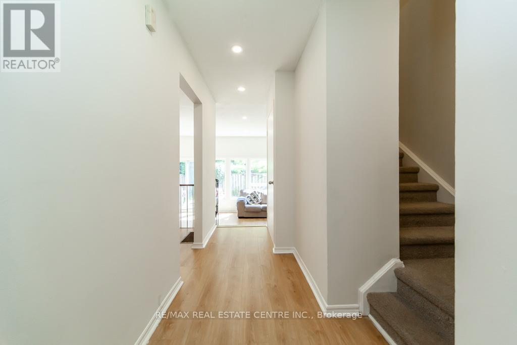 Welcome to this rare and uniquely located townhome, nestled within the tranquil and family-friendly Brant Gardens complex. Positioned right on the main street, this home offers the luxury of a private frontage view while maintaining the peace of a quiet neighborhood. Recently upgraded with brand-new laminate flooring and an abundance of pot lights, this home is bathed in natural light, creating an ambiance reminiscent of a bright, spacious studio. The heating and cooling system has been modernized, transitioning from a baseboard system to a high-efficiency furnace with central air conditioning, ensuring comfort throughout the year. The bright kitchen is a chefs delight, featuring a large window that floods the space with light, a Lazy Susan cupboard with pull-out shelves, and ample storage and countertop space. This culinary haven seamlessly connects to an open dining area and a generously sized living room, perfect for family gatherings and entertaining. Upstairs, you'll find three spacious bedrooms, each filled with natural light. The primary bedroom offers a beautifully updated semi-ensuite bathroom, styled like a Jack-and-Jill setup for convenience. With large windows and thoughtful design, these rooms are ideal for restful nights and refreshing mornings. This home also offers the convenience of a south-side separate entrance, underground parking, and a private fenced backyard, perfect for outdoor relaxation. Location is unbeatable, with a short stroll to box stores, popular restaurants, parks, and a public elementary school just steps away. Essential amenities like FreshCo, Tim Hortons, Shoppers Drug Mart, and more are at your doorstep. Commuting is a breeze with easy access to public transit and major highways, including QEW, 403, and 407.This is your opportunity to own a rare townhome that perfectly combines privacy, convenience, and modern living. Don't miss out schedule your private viewing today! (42165109)