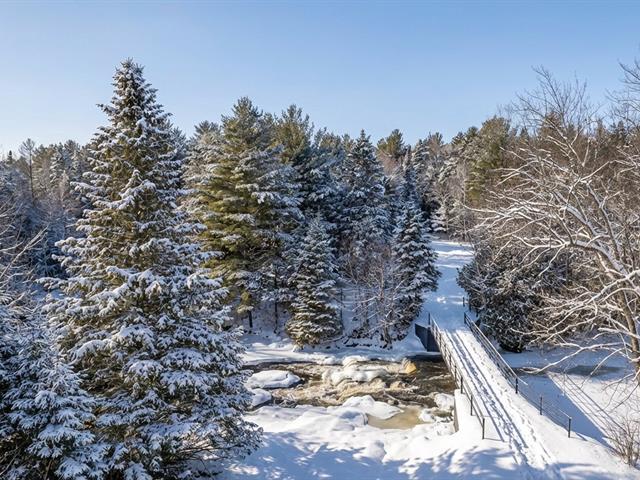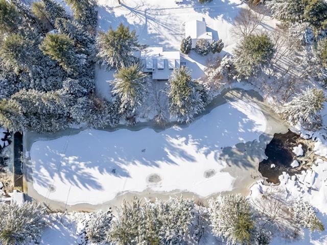Private estate nestled in lush natural surroundings, accessible by crossing a private bridge leading to a preserved world. The river borders the property, which features a dam, waterfalls, three ponds, wooded trails, wild berries, and abundant wildlife. The carefully renovated main residence offers three bedrooms and open-concept living areas with river views. Several additional buildings complete this exceptional site, offering endless possibilities. Sold with the adjacent lot (MLS28550746), for a total area of 3,731,807.95 sq. ft. A peaceful haven or the perfect starting point for a grand project. A truly exceptional property to discover. (40410938)