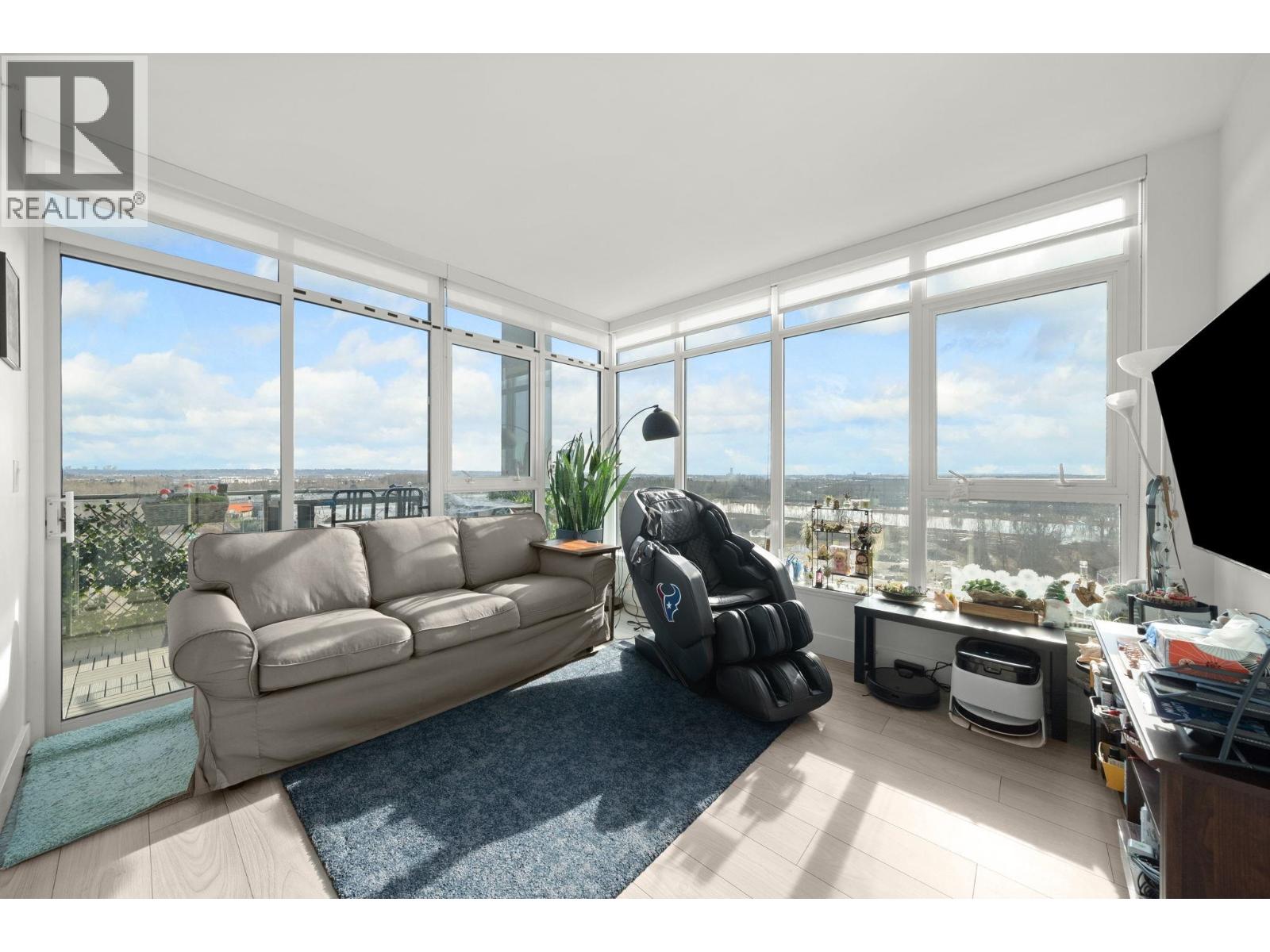 STUNNING, expansive VIEWS of the Fraser River, peekaboo mountain vistas & beyond from this upper-floor southeast corner 2 bedroom + flex home offering the perfect blend of modern comfort, thoughtful design and exceptional lifestyle. Bright and beautifully laid out with open concept living/dining area, kitchen with s/s Jenn-Air appliances + gas range, quartz countertops & herringbone backsplash. Enjoy NEST high-efficiency heating/cooling system with master ensuite in-floor heating. Extend your living outdoors onto the oversized private patio, ideal for relaxing or hosting. 2 side by side parking & 1 storage locker Great amenities, steps from all conveniences! OPEN HOUSE SAT FEB 28th 2:00-4:00PM. (32460551)