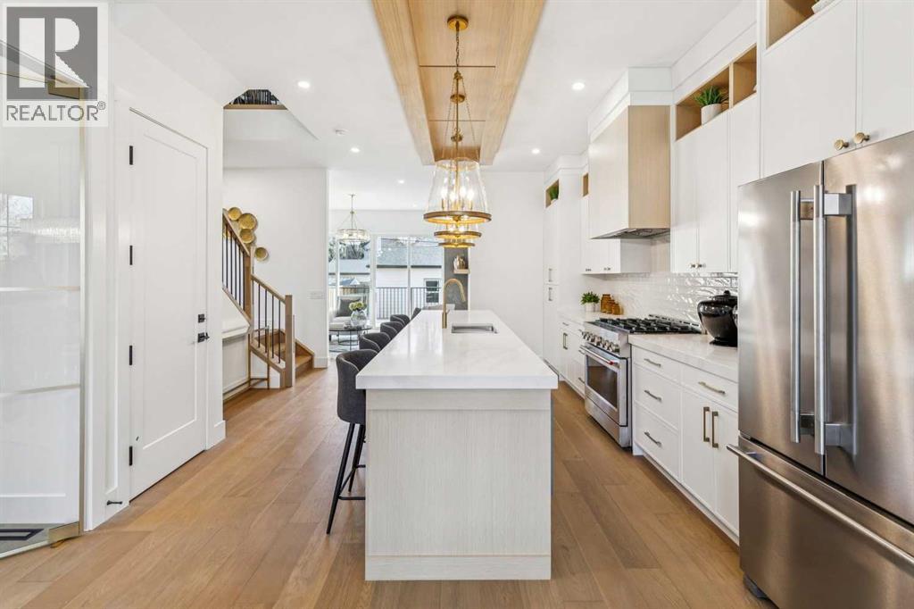 ***OPEN HOUSE SAT & SUN 1PM-3PM*** EXTENDED BASEMENT | DESIGNER INNER-CITY INFILL Welcome to a standout new infill in the heart of Killarney, delivering close to 3,000 sq ft of thoughtfully planned living space where modern elegance meets practical everyday living. Located in one of Calgary’s most desirable inner-city communities, this home blends upscale design, a bright open layout, and purposeful functionality. Step inside and you’re greeted by a welcoming formal dining space that effortlessly connects to the heart of the home — a stunning chef-inspired kitchen centred around an impressive 12-foot quartz island. Whether you're enjoying quiet mornings or hosting friends, this space balances sophistication with real-life usability. Positioned across from the kitchen, a sunlit home office provides a flexible space for work, study, or creativity. Toward the back of the home, the warm and inviting living room features a sleek fireplace and large patio doors that lead to the spacious rear deck, extending your living area outdoors for seamless entertaining. The main floor is completed by a built-in mudroom with ample storage and a stylish, discreet powder room. Upstairs, the primary retreat offers an airy feel with a vaulted ceiling, walk-in closet, and a spa-like ensuite showcasing statement flooring, dual vanities, and a beautiful freestanding tub. Two additional bedrooms, a modern main bathroom, and an upper-floor laundry room provide comfort and convenience for the whole household. The lower level features an extended LEGAL BASEMENT SUITE, adding incredible flexibility and value. Bright and spacious, this level includes a full kitchen, open living area, two bedrooms, a flex room, and its own laundry. Ideal for rental income, multi-generational living, or a private guest space, this suite delivers versatility without sacrificing design quality. Outside, the home is finished with a double detached garage and access from a paved rear lane, adding everyday conve nience. With refined finishes, a smart and functional floorplan, loads of natural light, and a location just moments from parks, schools, shopping, and quick downtown access, this property offers more than just beautiful design — it’s a lifestyle upgrade and a solid long-term investment. (31656689)