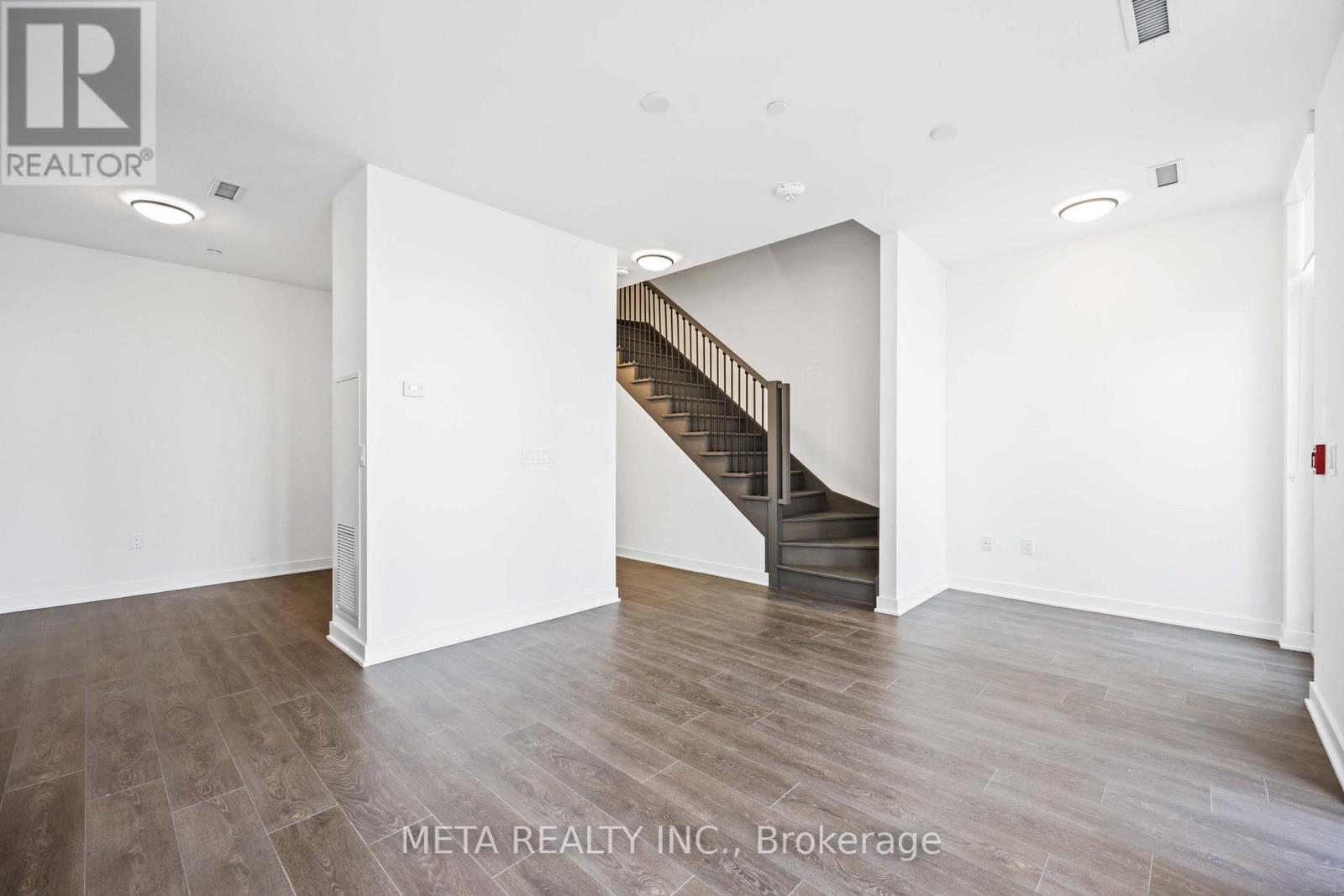 Experience elevated living in this beautifully designed 2-storey townhouse offering over 1,000 sq. ft. of sophisticated, thoughtfully curated space. The main level features a spacious enclosed den (9.7 ft x 7.6 ft) with a door for privacy, ideal as a third bedroom, executive home office, or private guest retreat.Designed for both comfort and functionality, the home offers two full bathrooms plus a stylish main-floor powder room. The modern kitchen is appointed with full-size appliances, sleek cabinetry, and ample prep space-perfect for everyday living and entertaining alike.Enjoy the rare convenience of dual access with a private street-facing front entrance and rear entry through the condominium building, allowing seamless access to premium amenities. The approximately 100 sq. ft. private front patio provides an intimate outdoor retreat, ideal for morning coffee or evening relaxation.Underground parking is included. Situated in a prime location with immediate access to transit and major highways, this residence blends urban convenience with upscale comfort.Residents enjoy an exceptional array of amenities including a state-of-the-art fitness centre, outdoor pool, landscaped patio with fire pit, concierge service, security, guest suites, party room, and a direct shuttle bus to the subway station.A rare opportunity to own a newer luxury townhouse in a highly sought-after community. The property will be professionally cleaned prior to closing, and noted deficiencies-including the den ceiling and flooring-will be fully repaired before closing. (42165629)