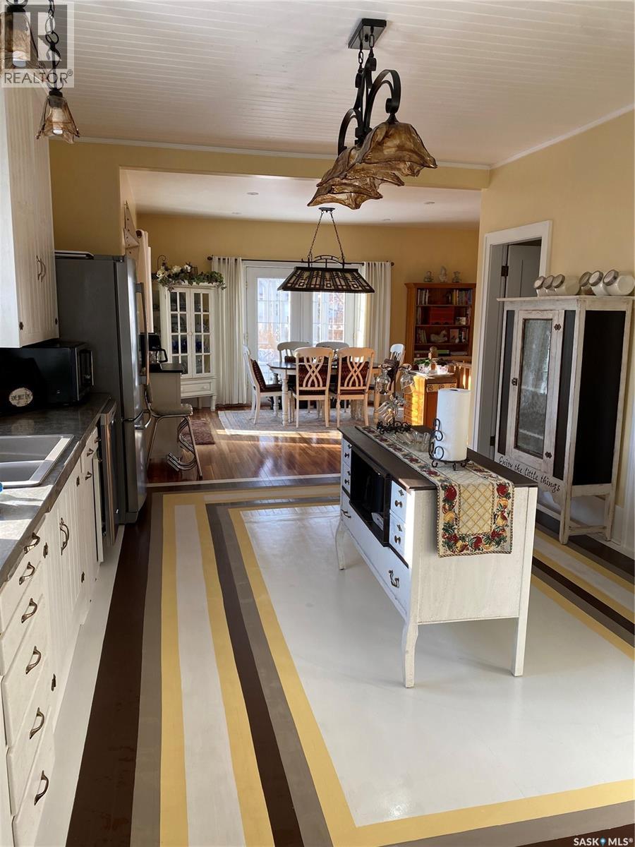 Welcome to this one-of-a-kind character cottage-style home, full of warmth, charm, and cozy vibes—truly a standout in Shaunavon. From the moment you arrive, you’re greeted by a delightful 3-season veranda overlooking Centre Street and a beautifully maintained perennial garden—an inviting spot to enjoy your morning coffee or unwind in the evening. Step inside to a bright and welcoming living room showcasing original woodwork that has been lovingly and meticulously cared for, adding timeless character you simply can’t replicate. The main floor features three comfortable bedrooms and a kitchen that sits at the heart of the home, complete with a thoughtful addition that enhances both space and functionality. The sun-filled dining room offers direct access to the deck, perfect for summer BBQs and entertaining. The beautifully updated bathroom is a true retreat with a separate shower and soaking tub, plus generous space to relax and recharge. Convenience continues with main-floor laundry located in the back foyer, offering extra storage and direct access to the attached garage. Downstairs, you’ll find two additional bedrooms, a cozy family room, and a second 4-piece bathroom featuring a jetted soaker tub—plus bonus laundry for added flexibility. This home has been exceptionally well cared for and offers an incredible blend of character, comfort, and functionality. A fantastic find with so much to love—this is one you truly need to see in person. (29398795)