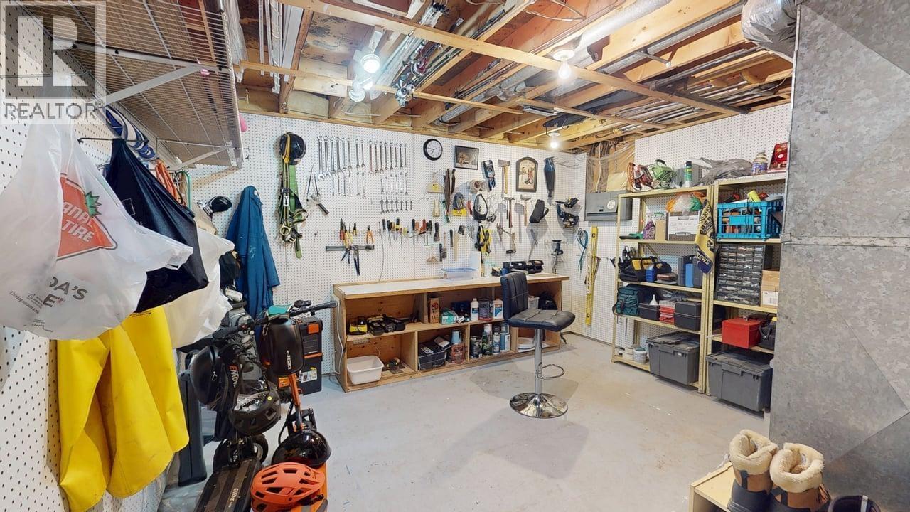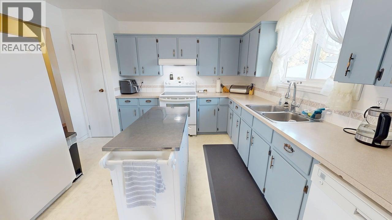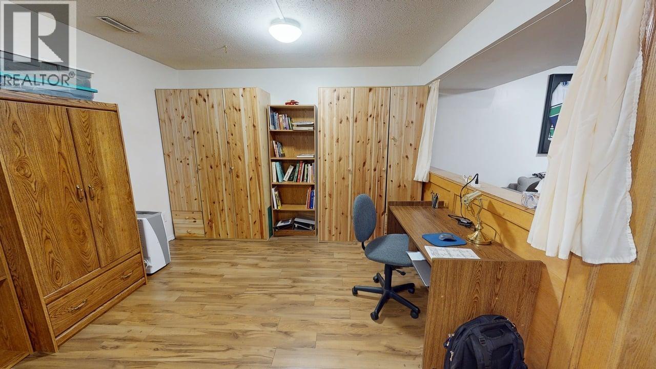 Pride of ownership shines from the curb! Attractive stucco exterior with arched entry, asphalt driveway, large carport and dedicated RV parking. Located just steps (approx. 120 ft) from the city dog park and close to both elementary and high schools. Fully fenced, beautifully manicured yard featuring a newer 20' x 40' deck and electrified & heated woodworking shed. Offering 2,500 sq ft, this spacious family home includes three bedrooms up, renovated four-piece bathroom, and a primary with two-piece ensuite. Bright living room with wood fireplace, large rec room, fourth bedroom with walk-in closet, three-piece bathroom, laundry, storage & hobby rooms. (32460821)
