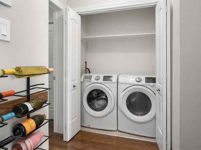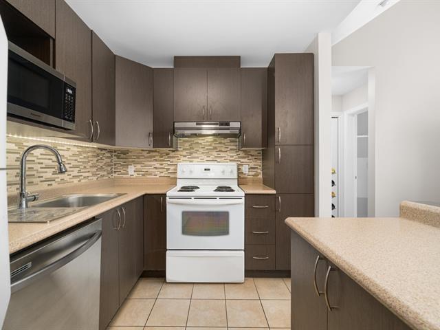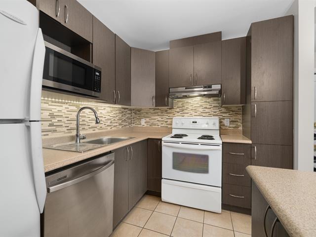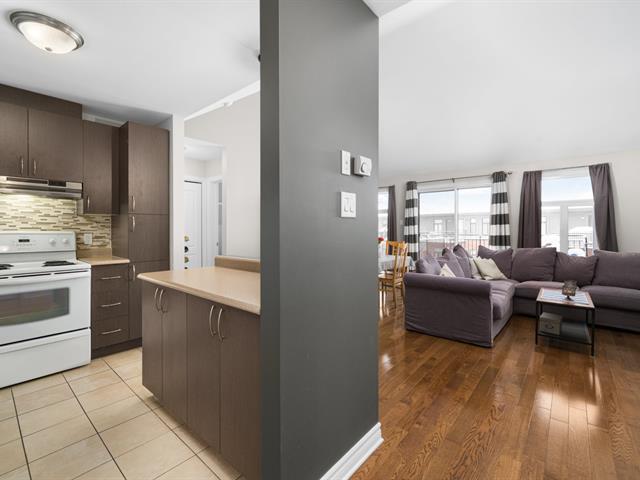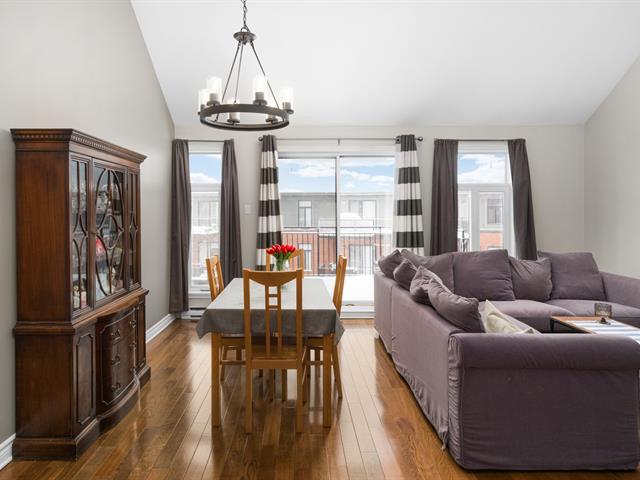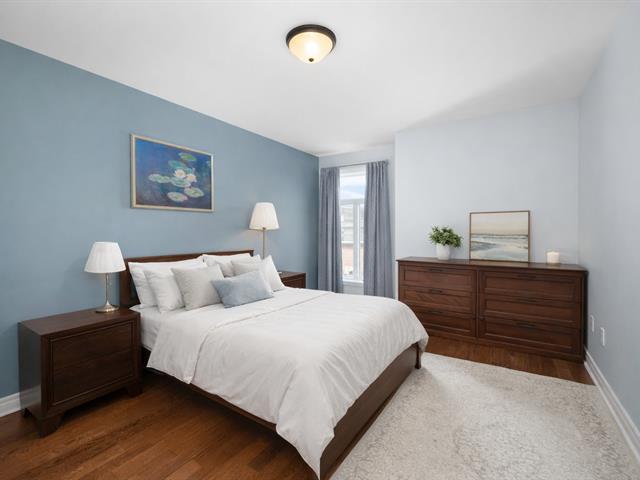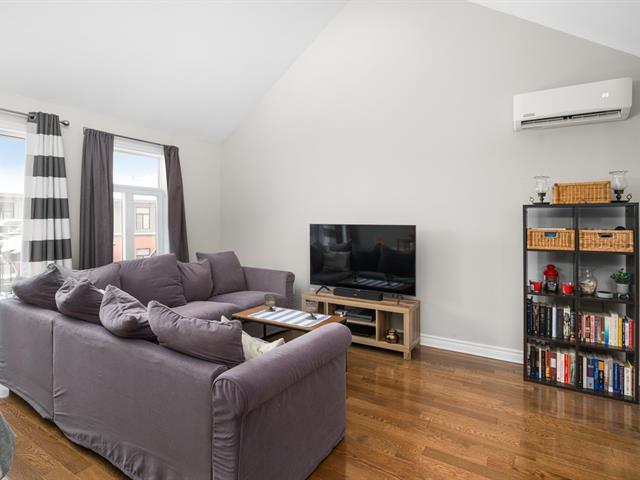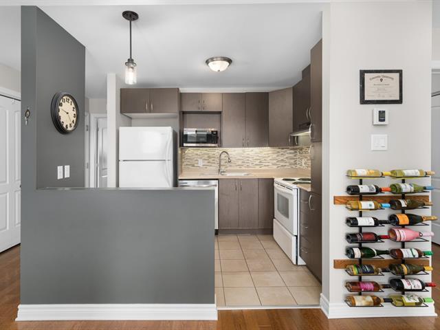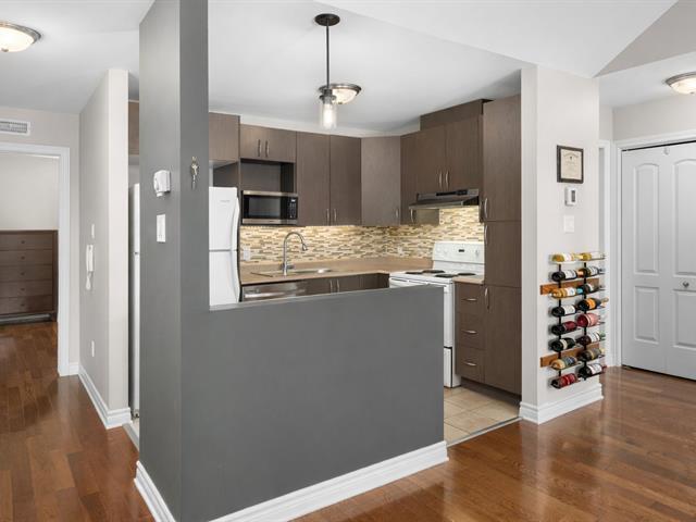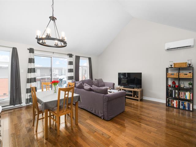 Top floor unit with cathedral ceilings, this stunning 2 bedroom condo in the sought after Espace MV project in Dorval South East features a large private balcony perfect for sunny days. Filled with natural light, this open concept layout offers a spacious and airy living area with a well designed kitchen that flows seamlessly into the main space. The high ceilings create an impressive sense of volume and comfort. The unit also includes a large bathroom with separate bath and shower, air conditioning, indoor parking, and a private storage space. Owners also benefit from exclusive access to Club Espace with gym and lounge area. (40366257)