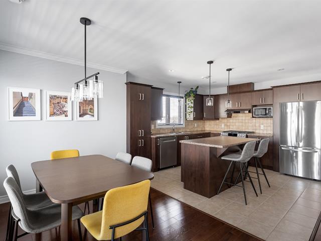 Situé au dernier étage, ce superbe condo se distingue par sa luminosité et son aire de vie à concept ouvert. La cuisine moderne avec îlot s'ouvre sur un salon accueillant agrémenté d'un foyer au gaz. L'unité propose deux chambres spacieuses, dont une chambre principale avec walk-in, ainsi qu'une élégante salle de bain avec douche indépendante et bain sur pattes. Profitez également d'un grand balcon avec rangement, d'un garage et d'un stationnement extérieur. Idéalement situé dans le secteur prisé de la Seigneurie du Chêne, à quelques pas du Lac de la Seigneurie, près des services, des axes routiers et à proximité de la Gare de Mascouche. (47071745)