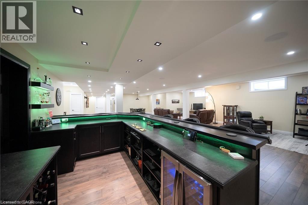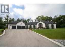 Experience refined country living in this exceptional custom built bungalow, privately set on 1 acre and embraced by 10 acres of protected green space. Offering over 7,000 sq. ft. of beautifully finished living space, this property blends timeless design with modern comfort in a setting that feels worlds away-yet remains conveniently close to everything. A grand custom entry opens to a dramatic foyer with soaring 16 ft cathedral ceilings, setting the tone for the elegance throughout. This spectacular great room features a striking two-sided stone fireplace and flows seamlessly into a chef-inspired kitchen complete with premium appliances, extensive cabinetry, and a spacious walk-in pantry (currently styled as a cozy coffee station). Whether hosting formal gatherings or enjoying relaxed family evenings, the layout is designed to impress without sacrificing warmth. A formal dining room, bright breakfast area, and sun-filled sitting room create multiple spaces to entertain or unwind. The main floor offers 4 generously sized bedrooms, including a serene primary retreat designed for spa-like relaxation. A thoughtfully designed laundry and mudroom adds everyday convenience with elevated style. The fully finished lower level delivers over 3,000 sq. ft. of additional living space, featuring a custom wet bar (with a hidden cold room tucked behind it), expansive recreation & games areas, 3 additional bedrooms. Ideal for extended family, guests, or multi-generational living. Outdoors you'll enjoy private walking trails, panoramic countryside views, and unmatched tranquility. A heated workshop, an oversized garage with space for up to nine vehicles provide incredible flexibility for car enthusiasts, hobbyists, or business owners. Located just minutes from Cambridge and Brantford, this is a rare opportunity to own a luxurious retreat that offers privacy, space, and convenience in perfect balance. This is More than a residence its a sanctuary, a statement, and a lifestyle! (70176230)