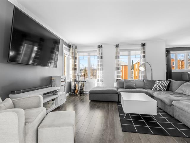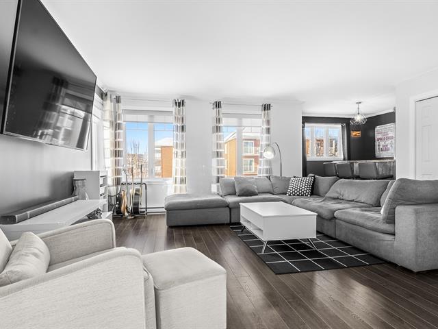 Magnifique condo de 2 chambres, lumineux et soigneusement aménagé, situé au 2e étage d'une copropriété de 4 unités. Vous serez charmé par l'immense salon fenestré et l'aire de vie ouverte, à la fois chaleureuse et conviviale. Cuisine fonctionnelle ouverte sur la salle à manger avec accès direct au balcon. Le condo propose aussi un espace bureau polyvalent, actuellement aménagé en coin bar, une grande salle de bain avec douche indépendante et salle de lavage, walk-in dans la chambre principale et beaucoup de rangement! 2 stationnements, situé dans un secteur tranquille et familial, près des services et à seulement 15 minutes des ponts. À VOIR! (45619634)