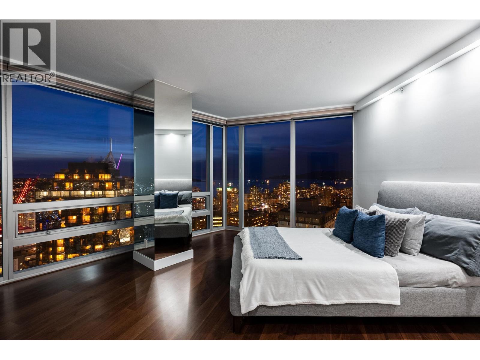 A bold landmark. A prestigious address. A refined residence. One Wall is downtown living at its most elevated. Day to night is a magical, immersive experience of both urban energy & natural wonder. The city sparkles below while ocean & mountains fill the SW panorama, framed by a sweeping 90´ elegantly curved wall of floor-to-ceiling glass. Fully renovated, design-forward interiors match this calibre: from large-format Carrara porcelain tile to rich hardwood, from fully redone kitchen & luxury bathrooms to lighting detail perfection. Automated blinds throughout, A/C & gas fireplace add comfort & convenience. Rare bonus - large Flex Room; office, study, pantry, wine vault...? Unparalleled 24/7 concierge team, hotel-connected amenities & services, steps to luxury shopping & dining. 2 parking (32461653)