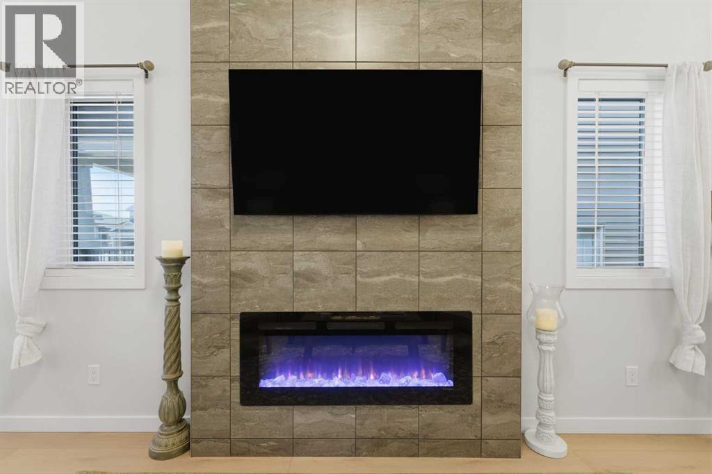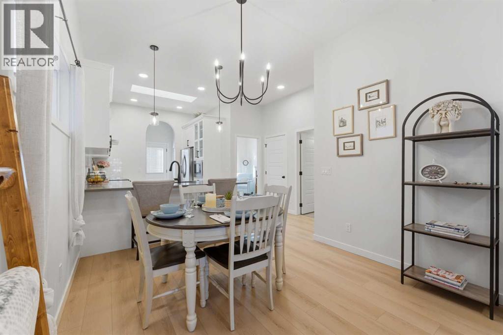 Welcome to an exceptional laned bungalow tucked into the award-winning community of Coopers Crossing in Airdrie where timeless design meets modern comfort in all the right ways.From the moment you arrive, this home makes a statement. Its charming laned configuration allows for a clean, welcoming front façade, while the rear double garage keeps the streetscape elegant and uncluttered. The low-maintenance landscaping frames the property beautifully, offering year-round curb appeal without demanding your weekends. Thoughtfully designed pathways and tidy greenery create a polished first impression that only gets better once you step inside.Open the front door and you’re greeted by soaring 10-foot ceilings on the main floor—an architectural feature that instantly enhances the sense of space and light. The expansive height amplifies every detail, from the modern lighting fixtures to the oversized windows that bathe the home in natural sunshine. The result is an airy, uplifting atmosphere that feels both luxurious and inviting.A Kitchen Designed to Impress. At the heart of the home lies a custom kitchen crafted for both everyday living and memorable entertaining. Beautiful cabinetry, sleek countertops, and thoughtful storage solutions combine style with functionality. A full set of appliances ensures you’re ready to host everything from intimate dinners to holiday gatherings. Whether you’re preparing a quiet morning coffee or a gourmet feast, this kitchen is as inspiring as it is practical.Above, a skylight draws in streams of natural light, adding warmth and brightness throughout the day. It’s the kind of detail that subtly transforms the mood of the entire living space—sunshine by day, soft stargazing ambiance by night.Comfortable & Cozy Living SpacesThe living area is anchored by a striking electric fireplace, offering both visual charm and effortless warmth. It’s the perfect focal point—ideal for cozy winter evenings or simply adding a touch of elegance to the ro om year-round.To ensure comfort in every season, the home is equipped with a central AC unit, keeping the interior refreshingly cool during Alberta’s warm summer months. Combined with the home’s thoughtful design, this creates an environment that feels just right, no matter the weather outside.Thoughtful Bedroom & Bathroom LayoutThis bungalow features 2 spacious bedrooms and 2 full bathrooms, all conveniently located on the main level for easy living.The primary suite is a private retreat—generous in size and designed for relaxation. Large windows provide natural light, while the adjoining full ensuite offers a spa-like experience with quality finishes and ample space to unwind.The second bedroom is perfect for guests, family, or even a stylish home office. A second full bathroom ensures comfort and privacy for everyone.Outdoor Living at Its FinestStep outside to discover a large rear deck—an extension of your living space that’s ideal for summer barbecues, morning coffee rituals, or quiet evenings (31657677)