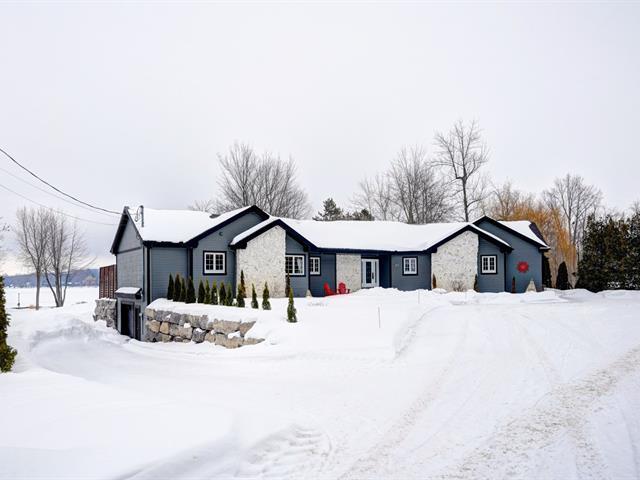 TO TAKE YOUR BREATH AWAY - WATERFRONT PROPERTY, You will be drenched in natural light from sunrise to sunset. Vast & unique property, located in a cul-de-sac offering you 3 bedrooms, 2+1 bathrooms, 5 car garage, spacious living space with gorgeous water views of Outaouais river from almost everywhere in the house. This jewel has been transformed in the past years into a Zen style living. A large master bedroom with cathedral ceiling with its own patio door where you can enjoy your morning coffee or your night cap while enjoying the view. This turnkey property is perfect for water sport lovers. (43857387)