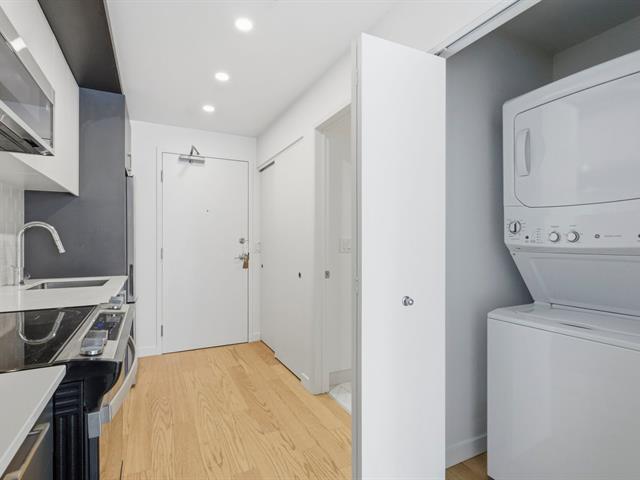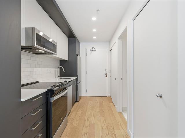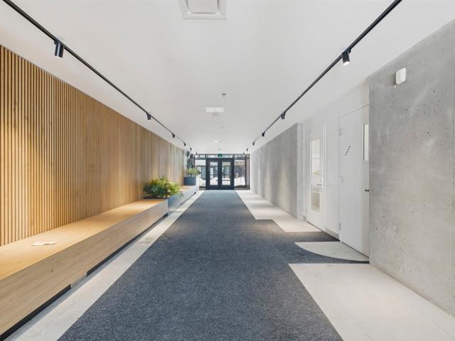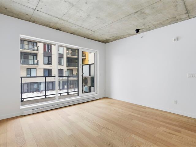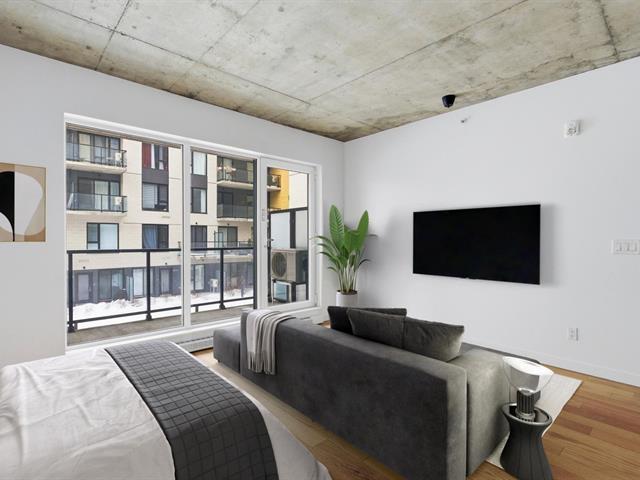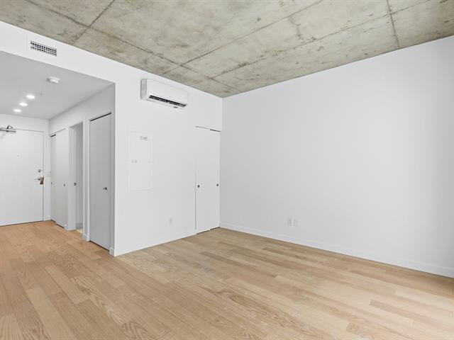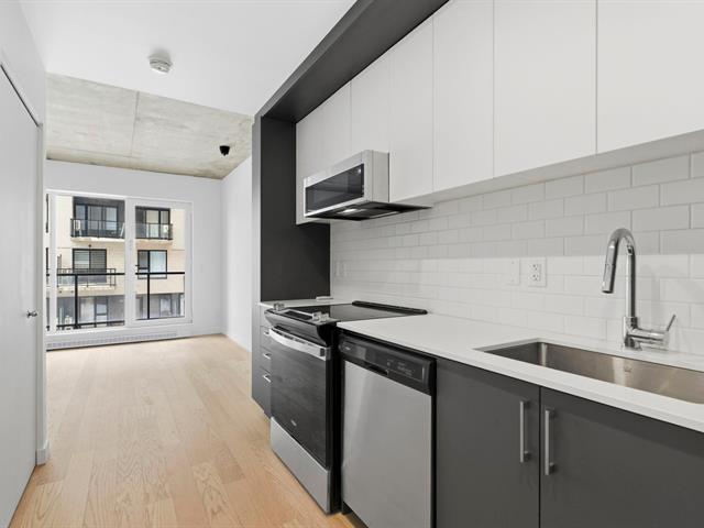 Bright studio located on the 2nd floor of a concrete building constructed in 2023, still covered by the new home warranty. Turnkey unit including all appliances, wall-mounted heat pump, air exchanger, and central hot water system. Private balcony and interior storage space located in the garage. Building with elevator and a beautiful shared rooftop terrace. Located in the Sir John project, within walking distance of Langelier metro station, with grocery stores, shops, parks, and services nearby. Quick access to downtown by public transit. Ideal for a first-time buyer or investment. (48433277)
