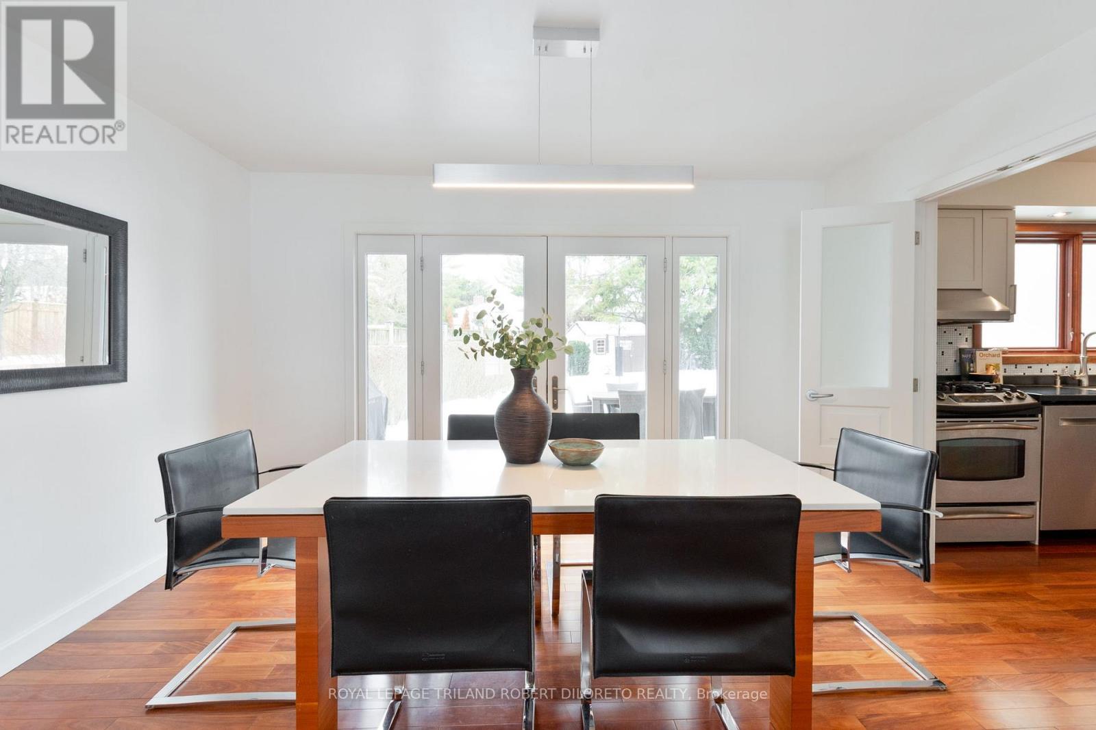 Outstanding 4 Bedroom, 2.5 Bath Executive 2-storey with double garage on large mature lot in prestigious RICHMOND HILL-MASONVILLE neighbourhood of North London! This magazine quality home has been extensively renovated top to bottom & inside out (since 2006) with meticulous attention to design, detail and construction. There is nothing to do but move-in & enjoy living! Highlights: redesigned exterior w/custom architectural details & quality STO stucco system over brick; stamped concrete drive and walkways; new metal roof 2023 & new gutter guards 2025; all updated PELLA windows & exterior doors & 2 sets of transomed patio doors; serenely elegant & modern interior with neutral wall colours & decor; all updated interior doors, hardware, trim & baseboards; all updated flooring including Mahogany wood floors, polished granite, porcelain tile + newer vinyl click flooring in basement (2025)--totally carpet free!; all updated electrical including 100 AMP panel, lighting, fans & exhausts & metering; all updated bathrooms w/even more recent custom MARTIN JESKO vanities (2025) in ensuite & powder room + new ensuite shower (2025); updated kitchen cabinetry (2025); 4 generously sized bedrooms w/ample customized storage & 2 baths on upper level feature stunning primary w/breathtaking skylights & large walk-through closet w/custom organizers to luxurious ensuite; the lower level is finished to same standards as the rest of the home and features plenty of space to utilize as needed. The exterior is just waiting for the nice weather to enjoy with expansive stamped concrete patio, shade trees, updated privacy fencing & lovely garden shed (2017) w/concrete pad. Additional highlights: wrought iron gates at both sides of the home (2014), owned hot water heater (2017), PROSLAT slatwall wall system in garage and the list goes on. Situated in a highly sought-after school district & walking distance to parks & nature trails, Masonville shopping, restaurants, University Hospital & much more. (42168708)